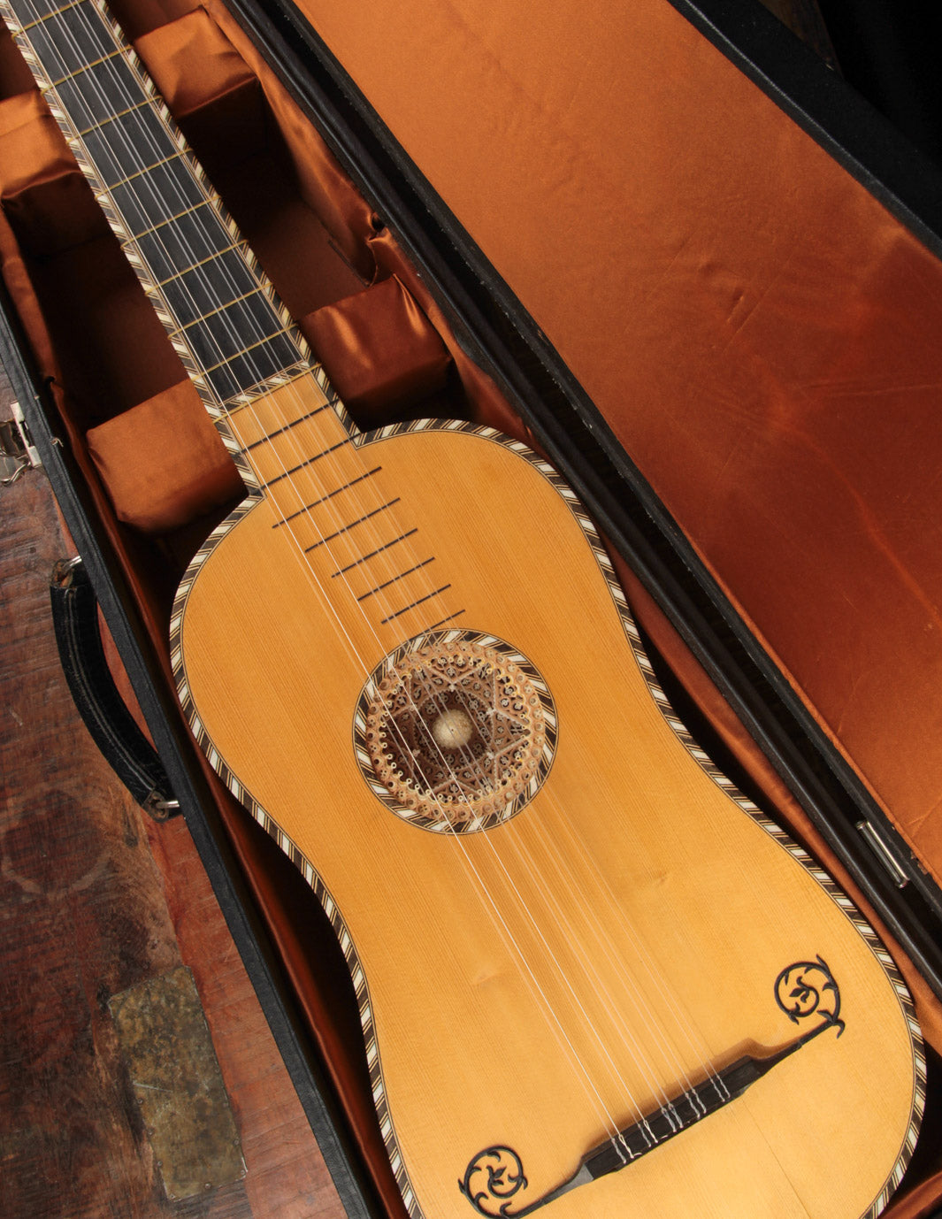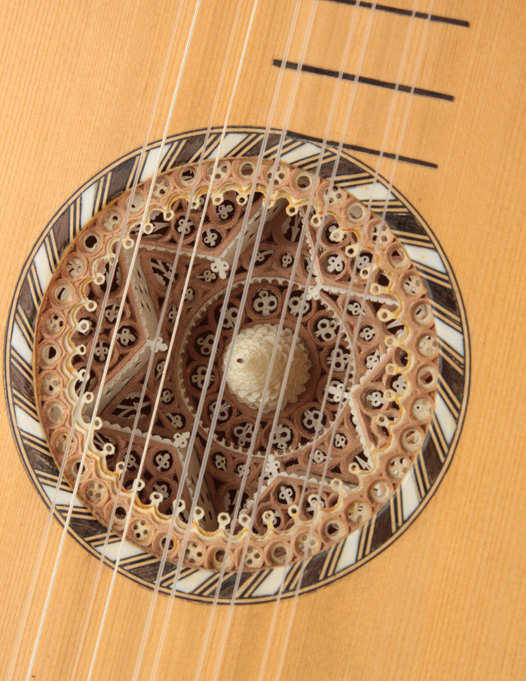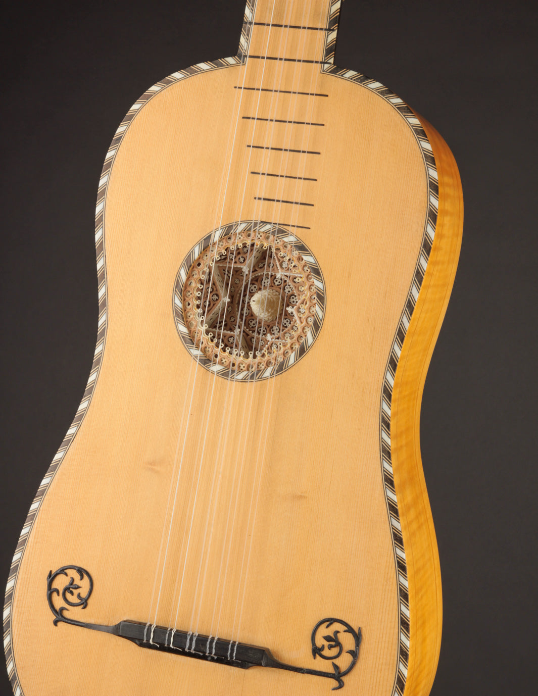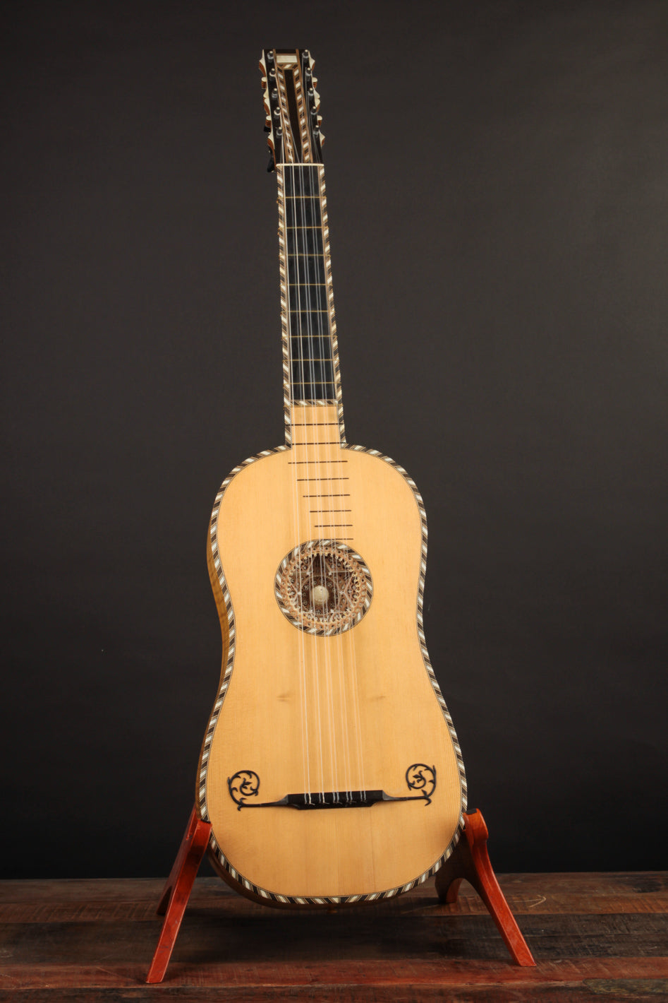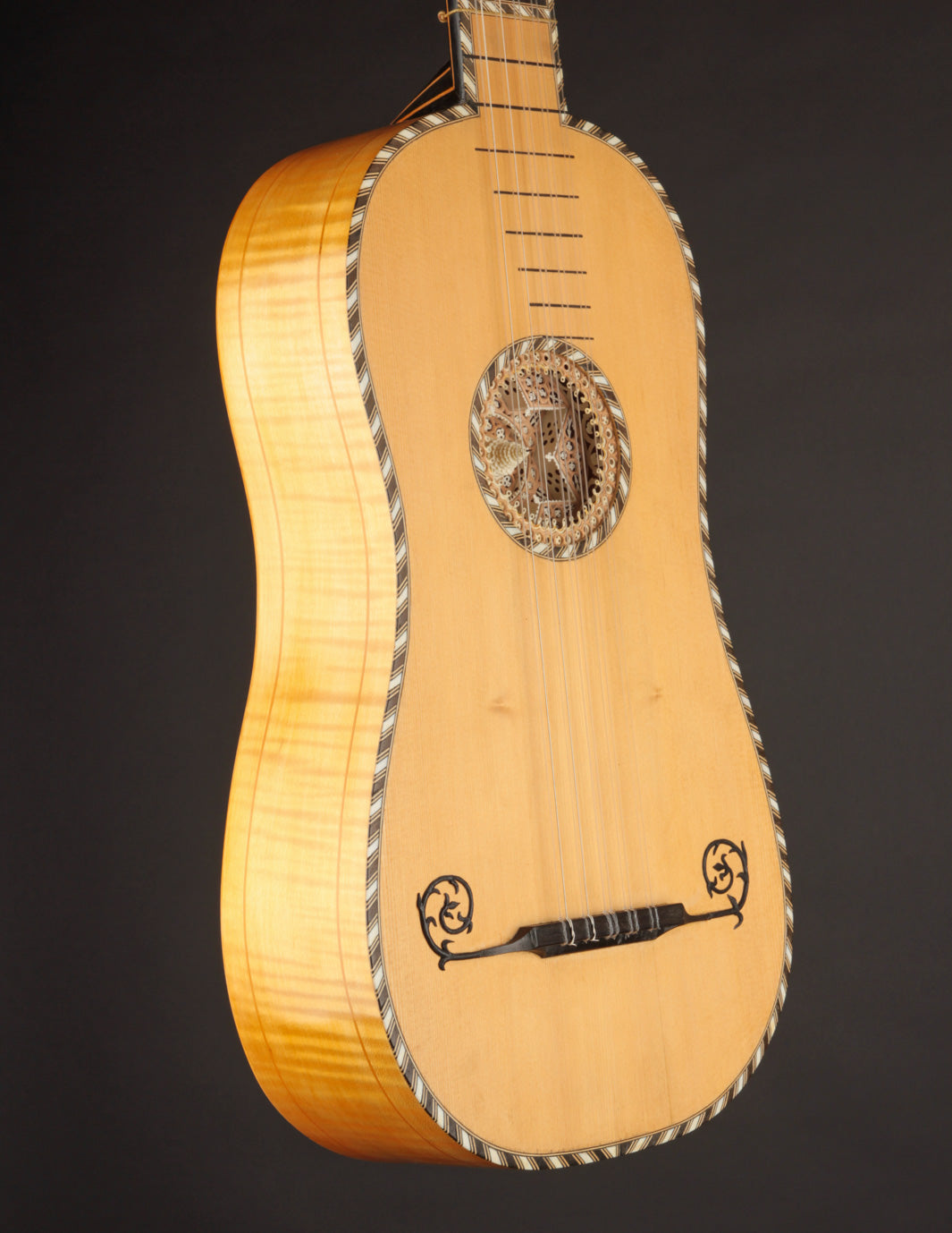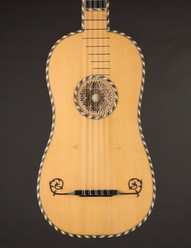 Meticulous replica of a baroque guitar made in Paris in the late 17th century and now held in the Smithsonian's National Museum of American History.