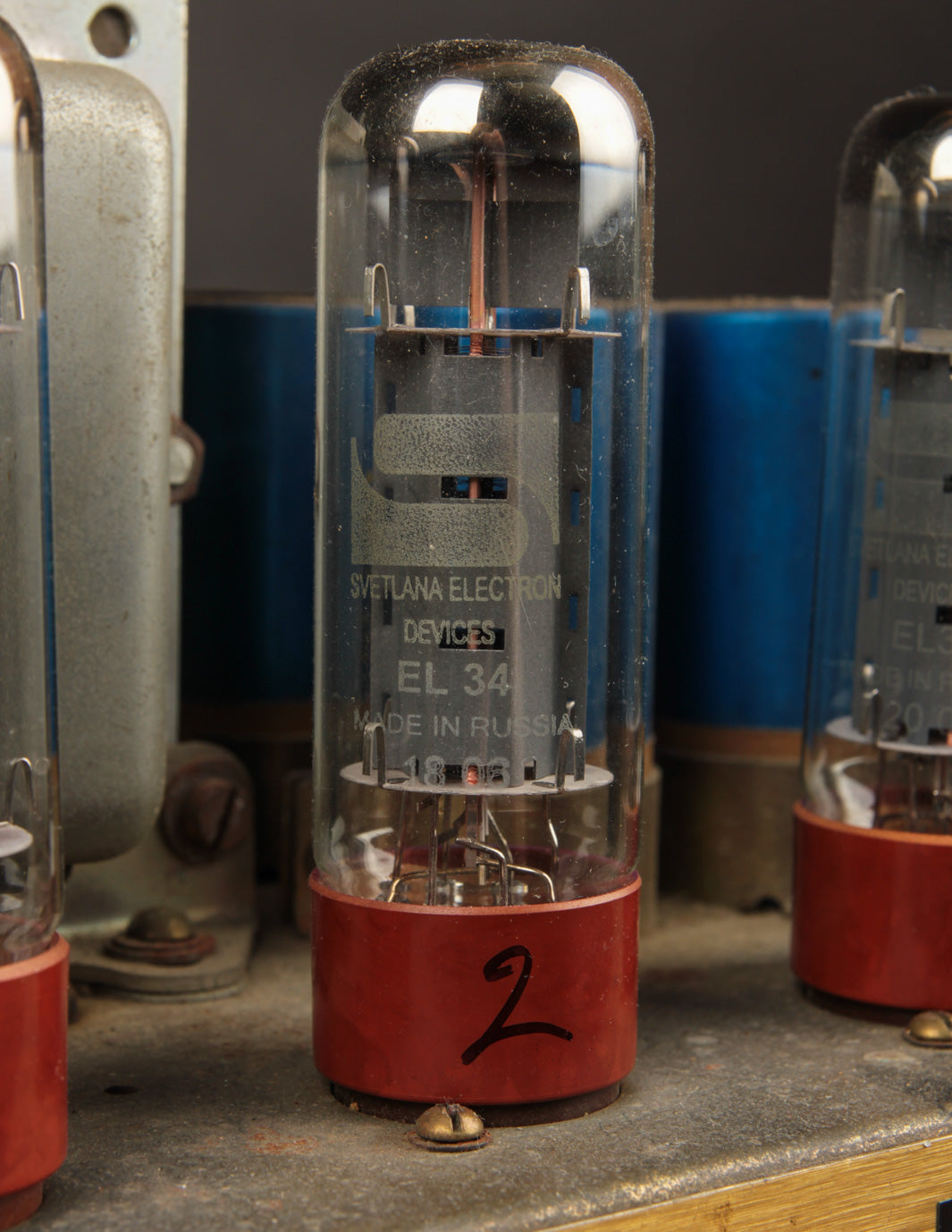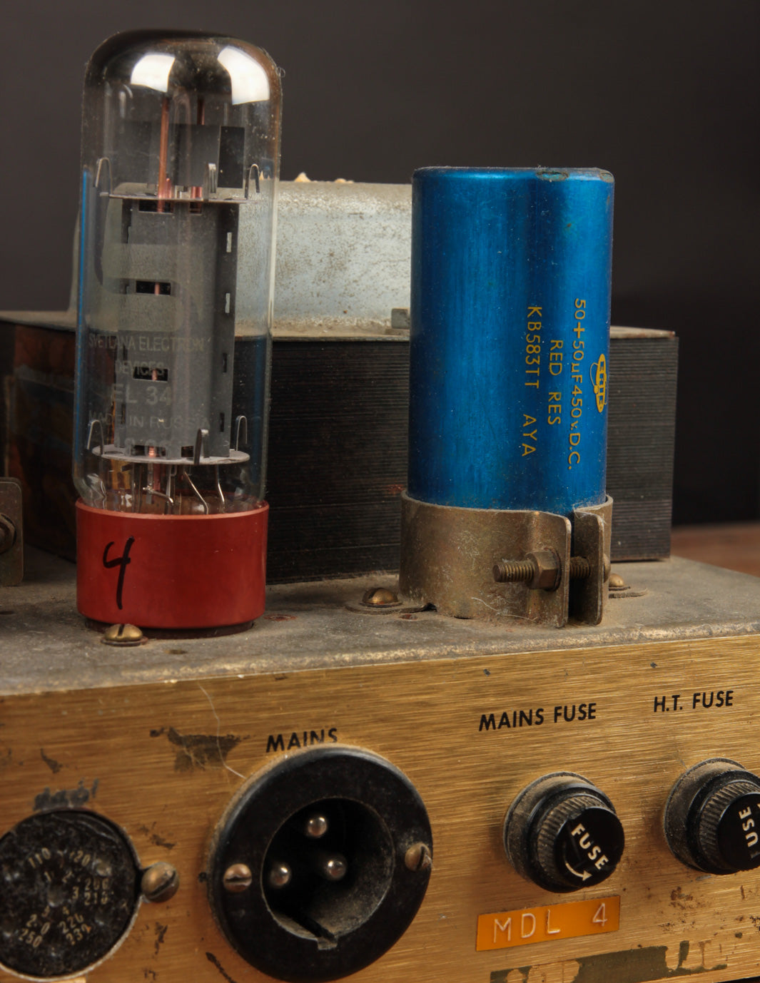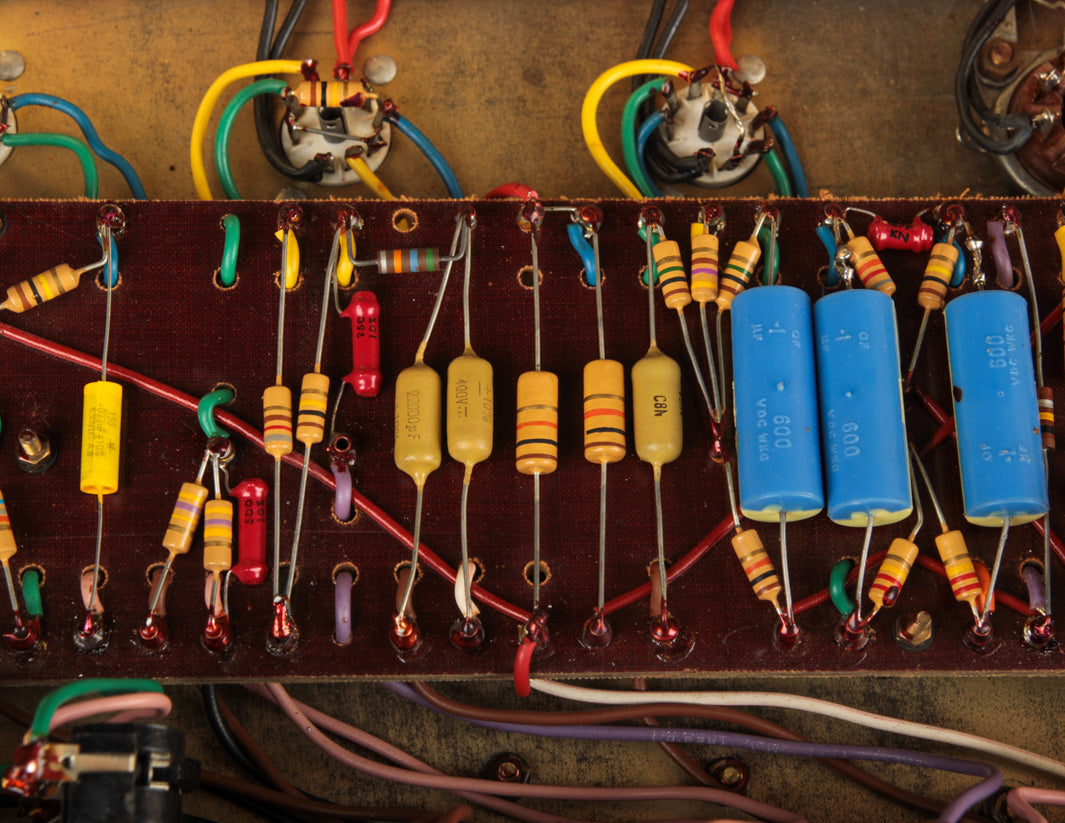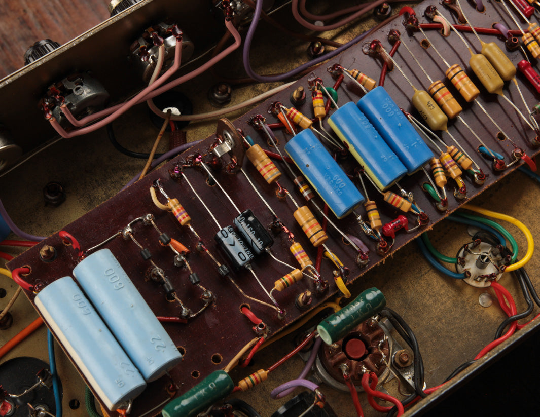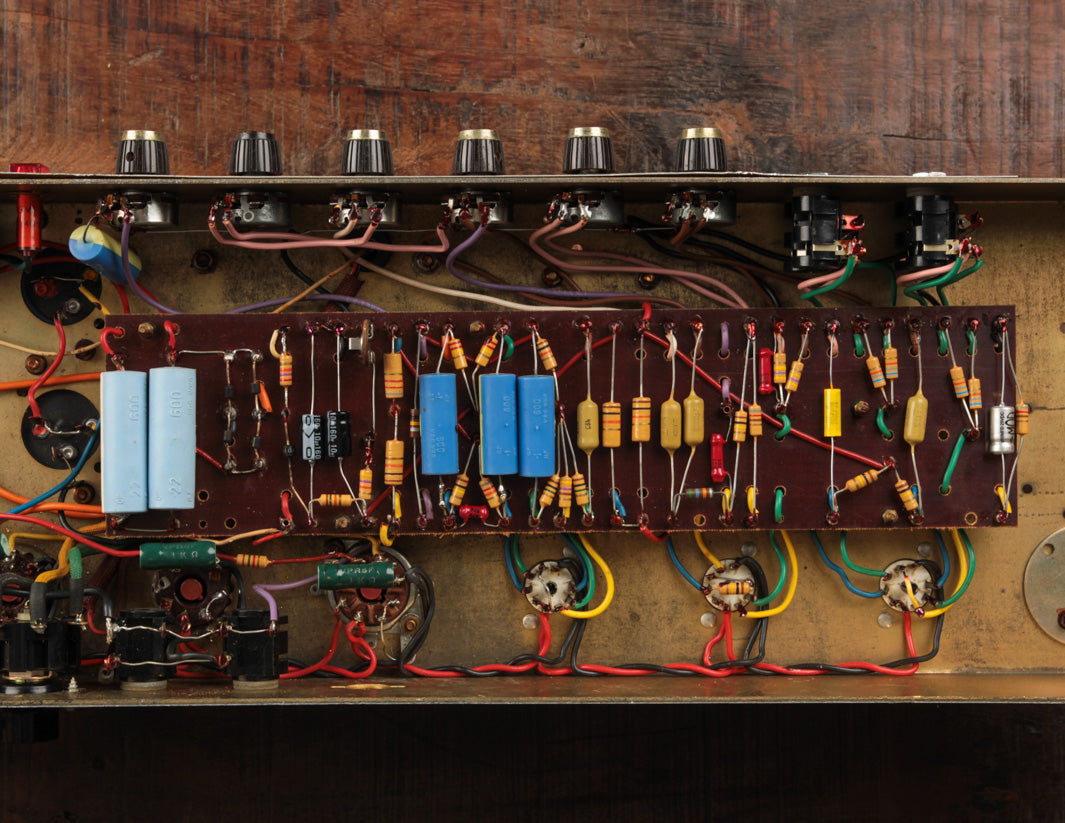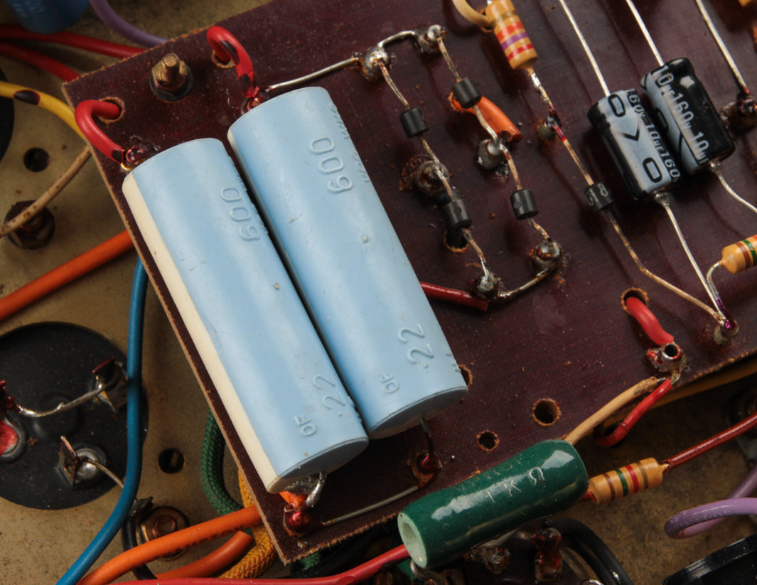 The good news? Transformers and pots along with the main PTP board are original to the amplifier, and no additional holes have been found on the chassis. The amp received its most recent service by way of Boston-area amp tech Stan Day, who completed the work in November 2022. The amp is fully serviced and ready to rock.