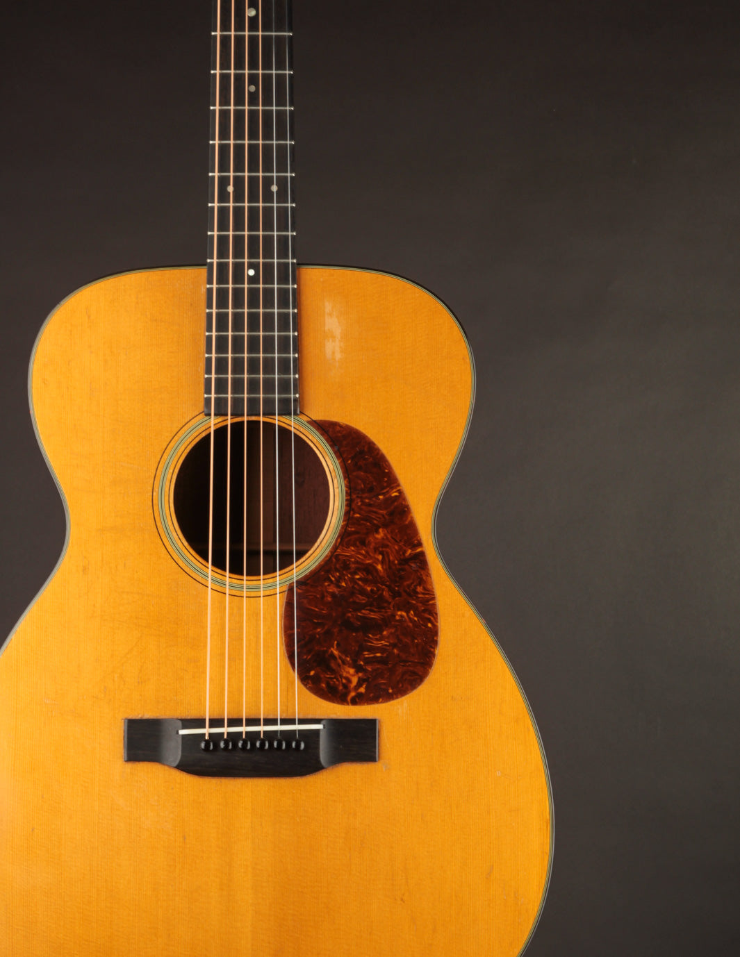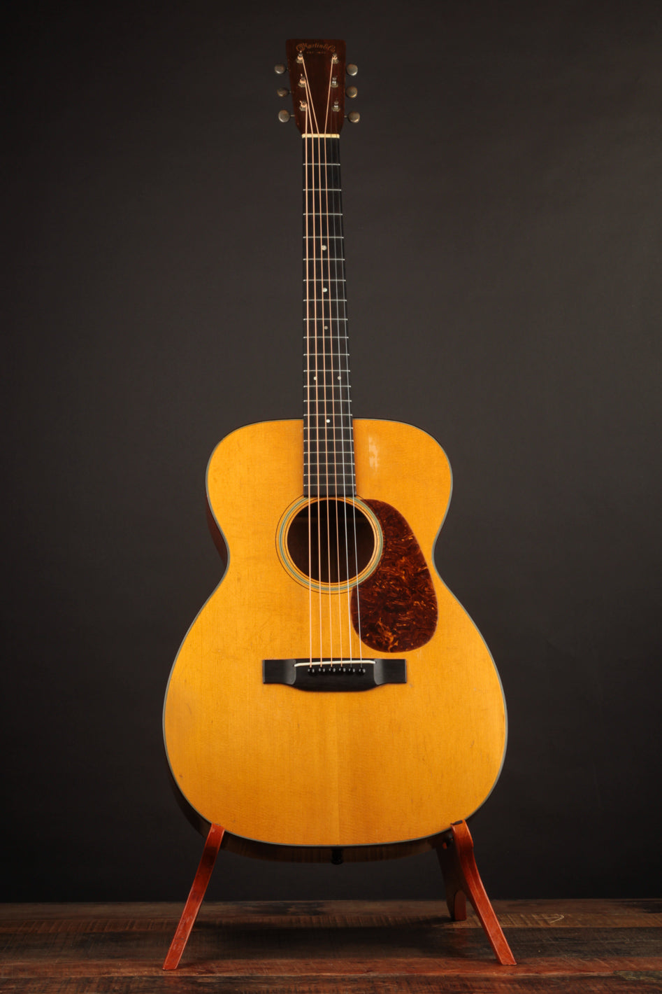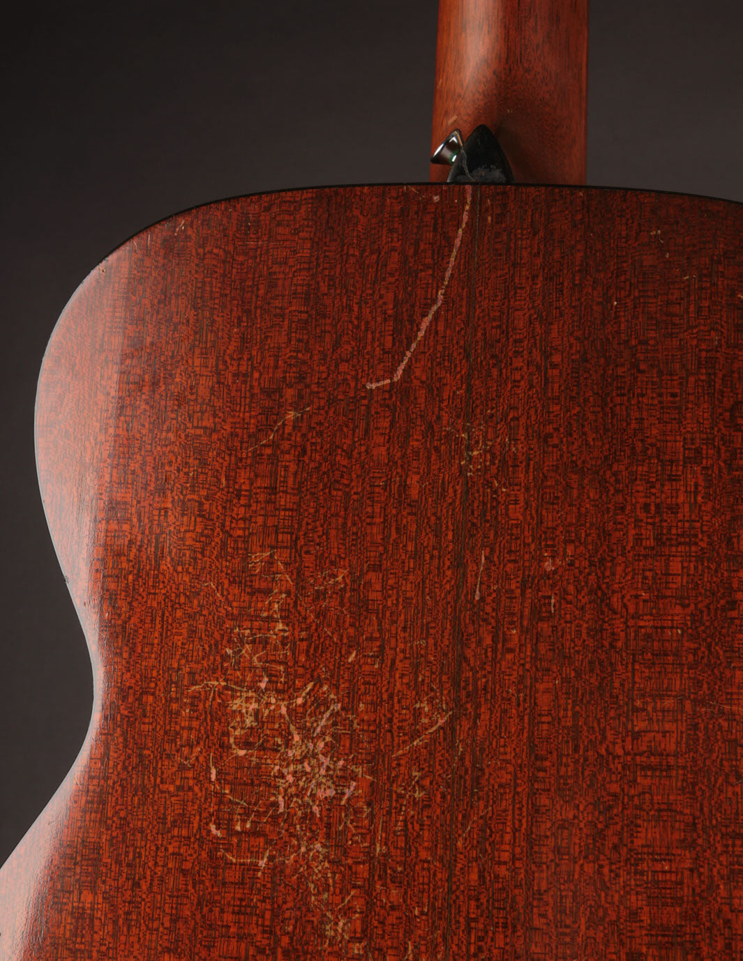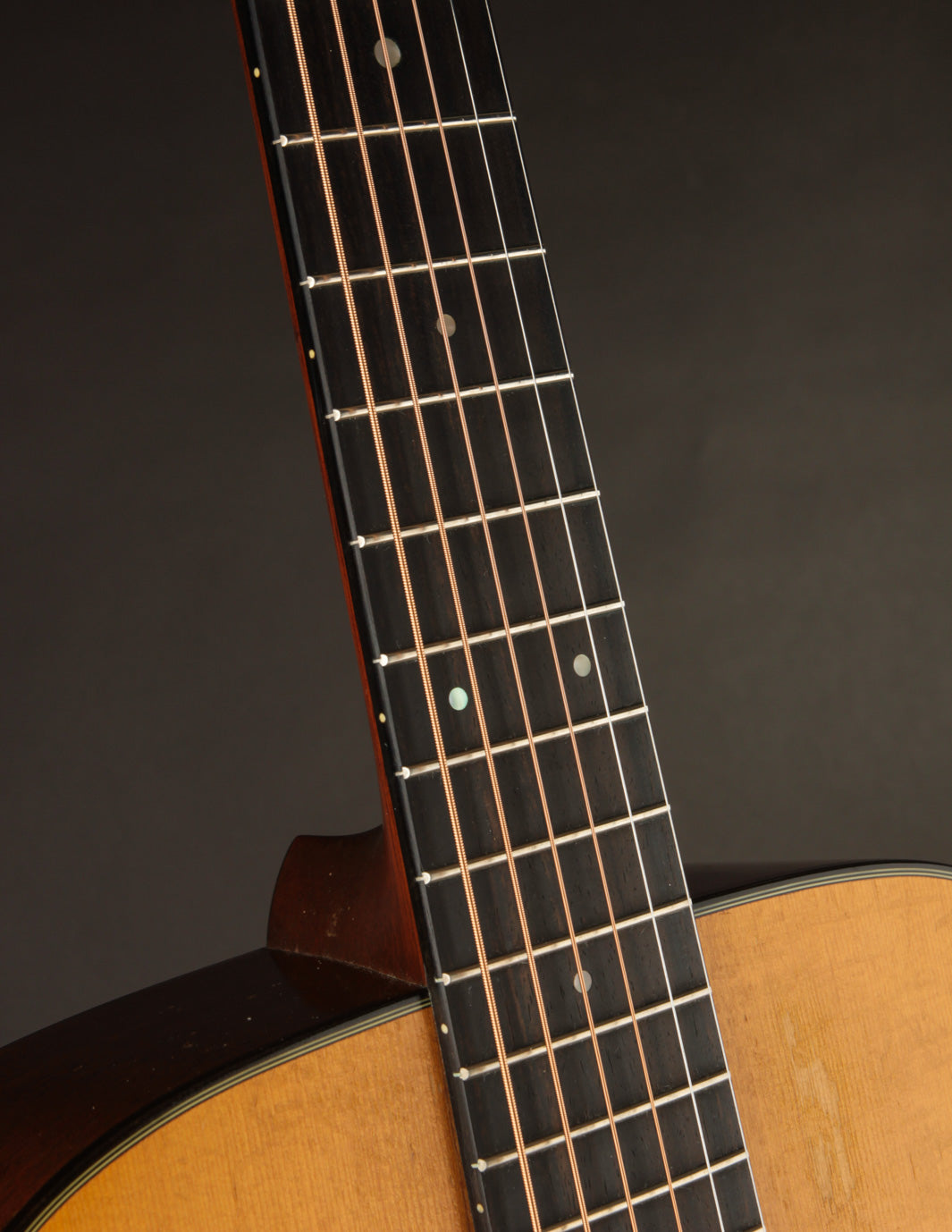 We hardly had to change a string on this 00-18 when it arrived at the shop. Repairs performed by Gruhn in 2007 include: neck reset, new bridge installation, re-fret, and new saddle installation. The original bridge plate was mildly worn, but it's been fixed and remains in great shape. A small pickguard crack was glued, and also remains stable and immobile. The rest of the guitar's structure is great-looking, and in beautiful, original condition. It's priced with a 1940's hardshell case, which has been re-lined. Anyone looking for a marquee example of a 1930's Martin 00 would be well served by this guitar, which we think has attractive value for players and collectors alike.