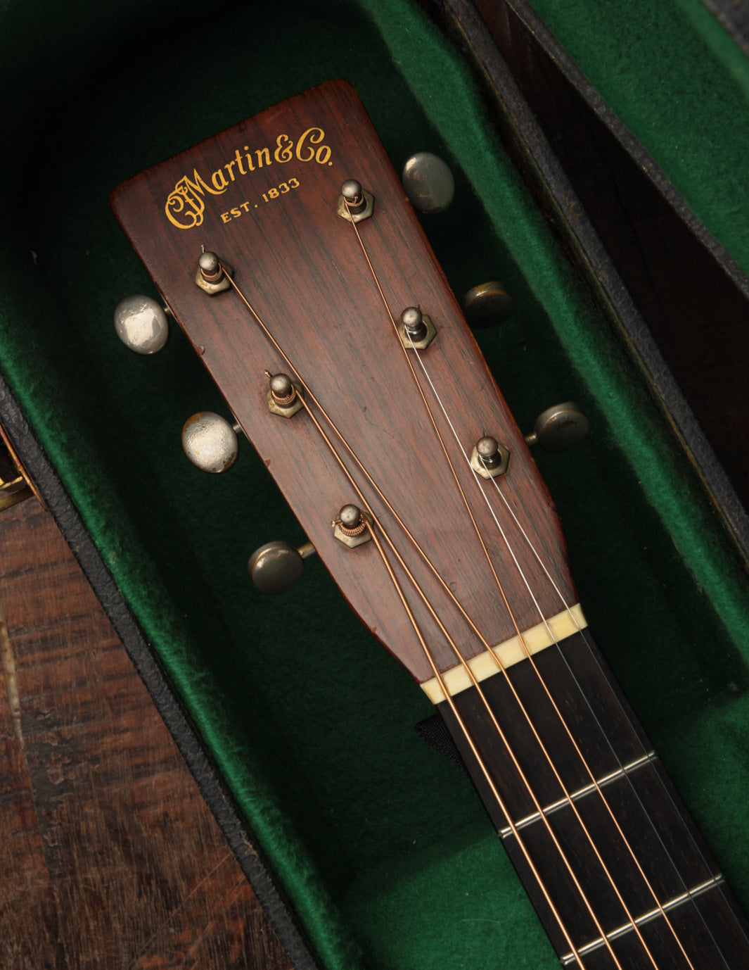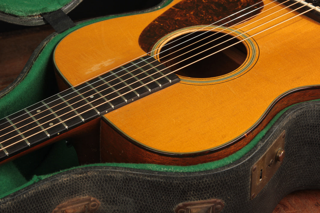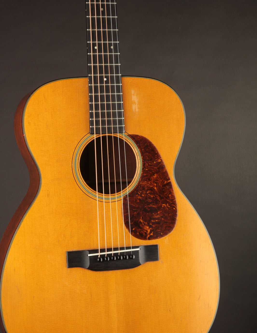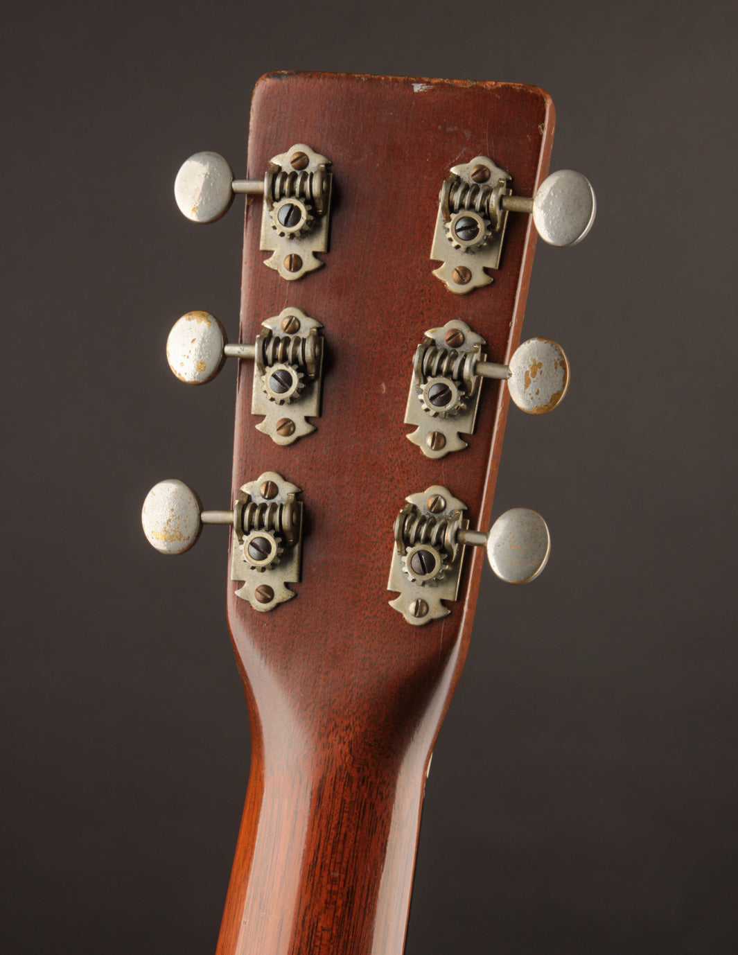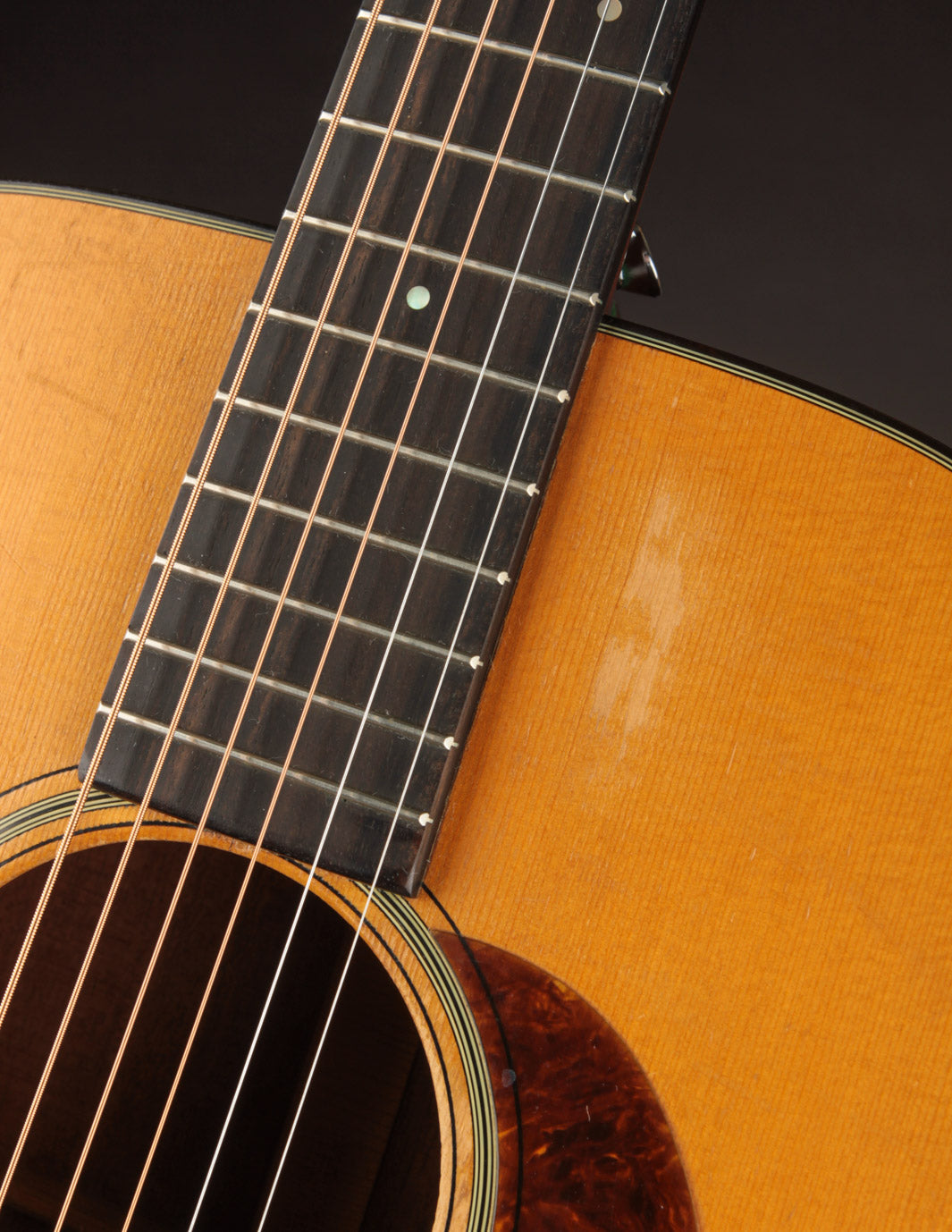 We hardly had to change a string on this 00-18 when it arrived at the shop. Repairs performed by Gruhn in 2007 include: neck reset, new bridge installation, re-fret, and new saddle installation. The original bridge plate was mildly worn, but it's been fixed and remains in great shape. A small pickguard crack was glued, and also remains stable and immobile. The rest of the guitar's structure is great-looking, and in beautiful, original condition. It's priced with a 1940's hardshell case, which has been re-lined. Anyone looking for a marquee example of a 1930's Martin 00 would be well served by this guitar, which we think has attractive value for players and collectors alike.