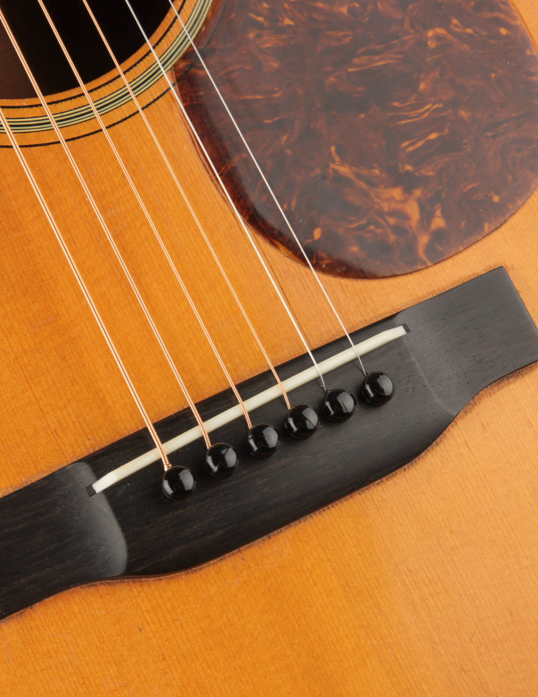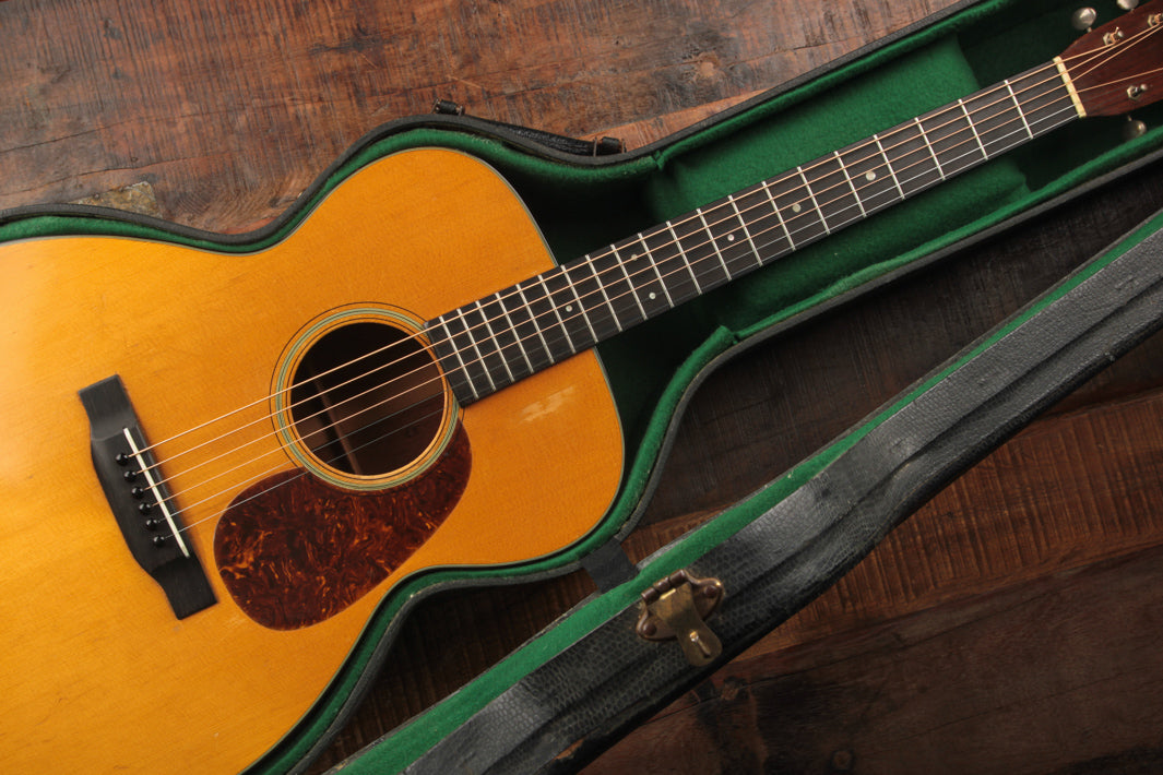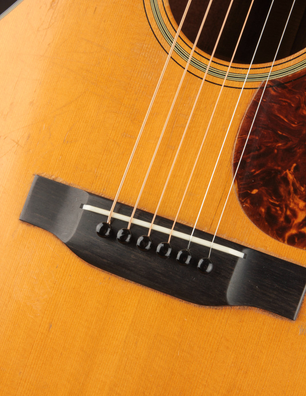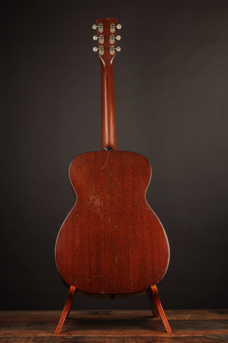 We hardly had to change a string on this 00-18 when it arrived at the shop. Repairs performed by Gruhn in 2007 include: neck reset, new bridge installation, re-fret, and new saddle installation. The original bridge plate was mildly worn, but it's been fixed and remains in great shape. A small pickguard crack was glued, and also remains stable and immobile. The rest of the guitar's structure is great-looking, and in beautiful, original condition. It's priced with a 1940's hardshell case, which has been re-lined. Anyone looking for a marquee example of a 1930's Martin 00 would be well served by this guitar, which we think has attractive value for players and collectors alike.