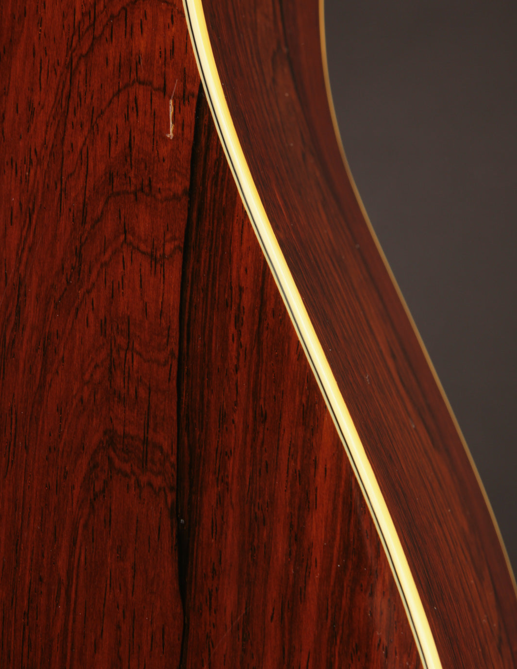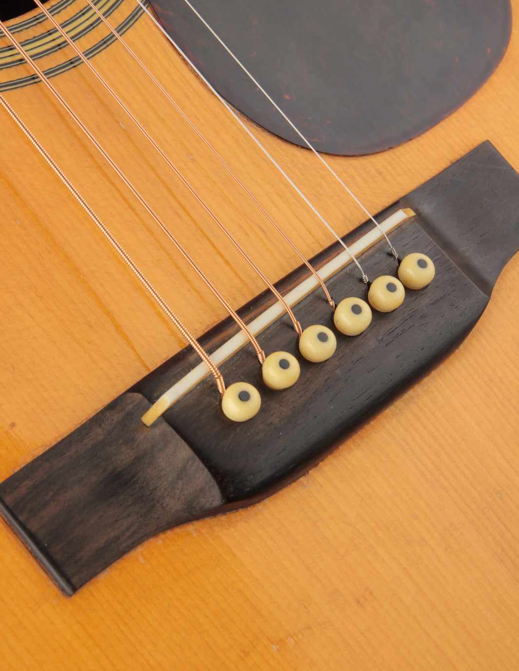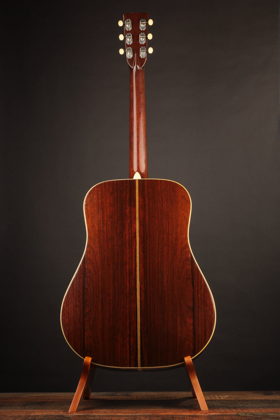 This herringbone-trimmed Martin D-28, serial number 87415, was stamped on March 16, 1944, and cleared final inspection on July 11th that same year. Amongst its batch siblings was 87422, the D-28 that would end up in the hands of Hank Williams, and which now resides in the Country Music Hall of Fame. While that's little more than an interesting footnote in 87415's history, it may lend credence to its excellence as a musical instrument: we have never heard a herringbone from this period we would not classify as an incredible guitar. Built towards the end of the scalloped-brace era, and equipped with ebony neck-support rods, these D-28s are lightweight, super-responsive, and typically exhibit huge dynamic range with great fundamental "woodiness" of sound alongside lots of sparkle and complexity. 87415 is no exception to this rule; and shows grand-piano characteristics as it relates to shimmer and power across its voice. It's a hugely warm-sounding instrument, with pillowy bass, fat mids, and thick, round trebles all the way up the neck. An incredible, lifer of a flatpicking guitar, it responds immediately and pleasantly, even to a light touch, and occupies a tremendous amount of sonic space when put into alternate tunings and played fingerstyle. As sound goes, we rate this guitar as highly as a wartime D-28 can be rated.