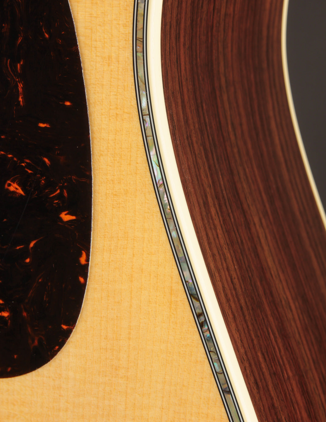 From Martin: "Inlaid in stunning abalone pearl and appointed with gold tuners, it's more than a Dreadnought: it's an heirloom. Premium East Indian rosewood and spruce combined with hand-carved scalloped bracing to produce rich, powerful, complex tone."