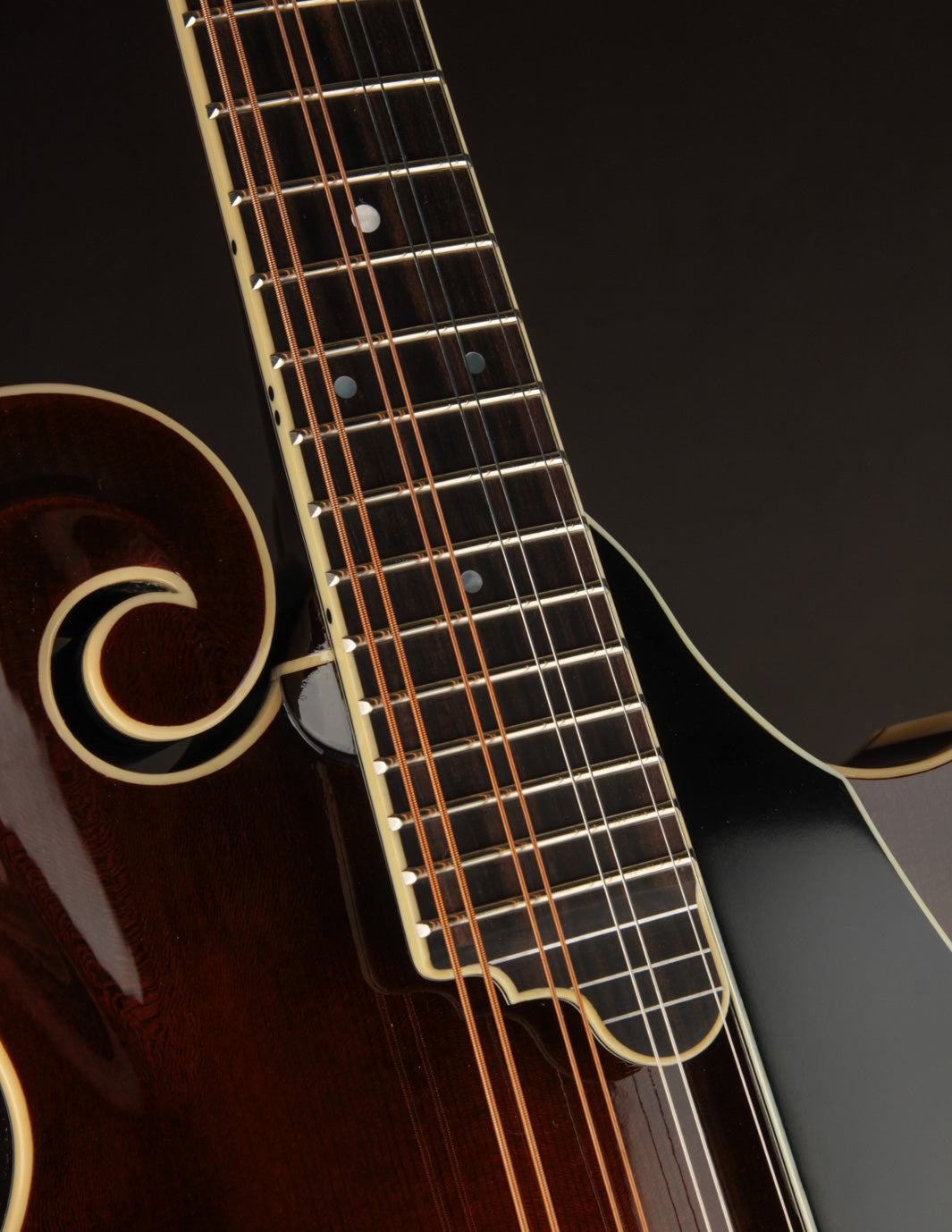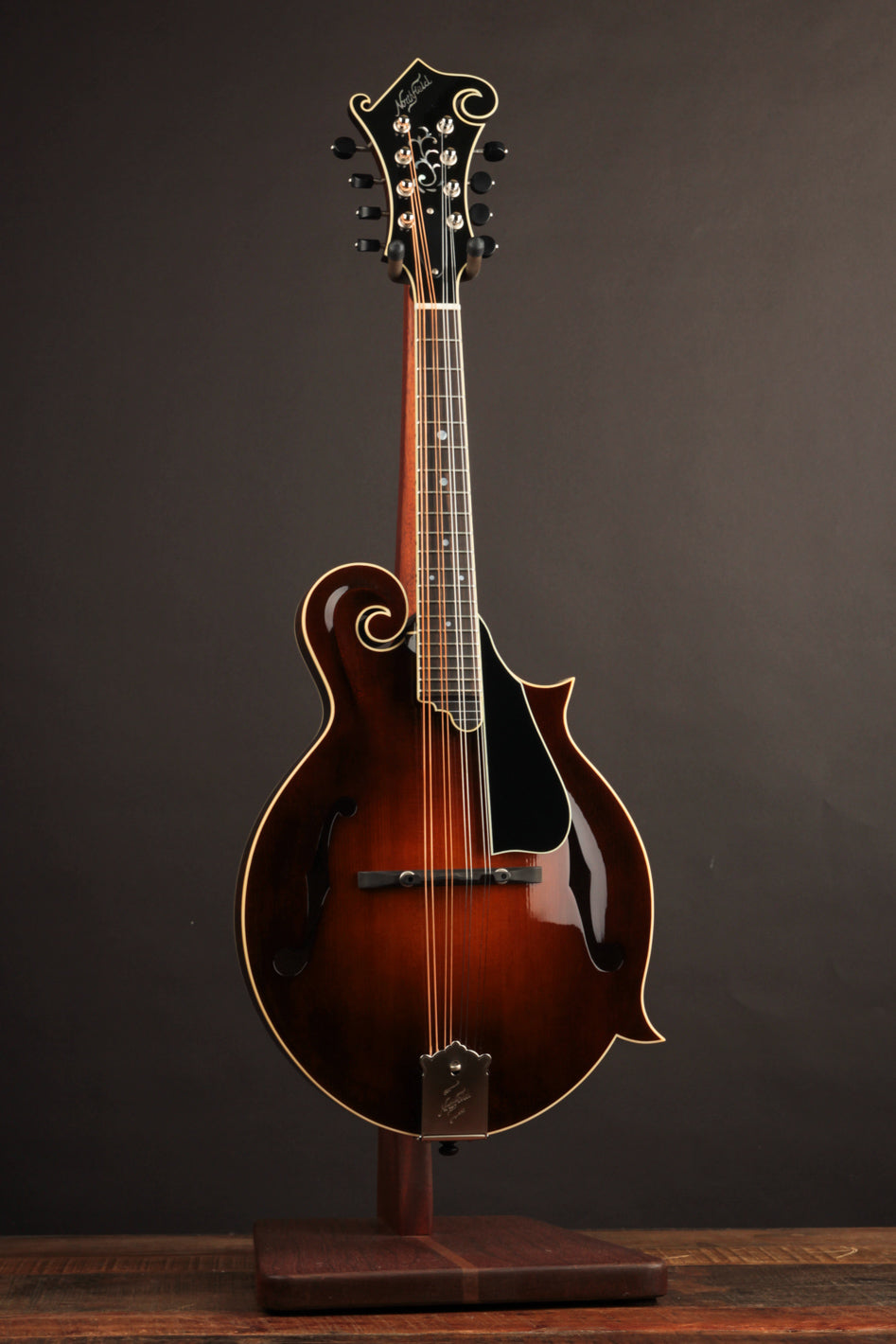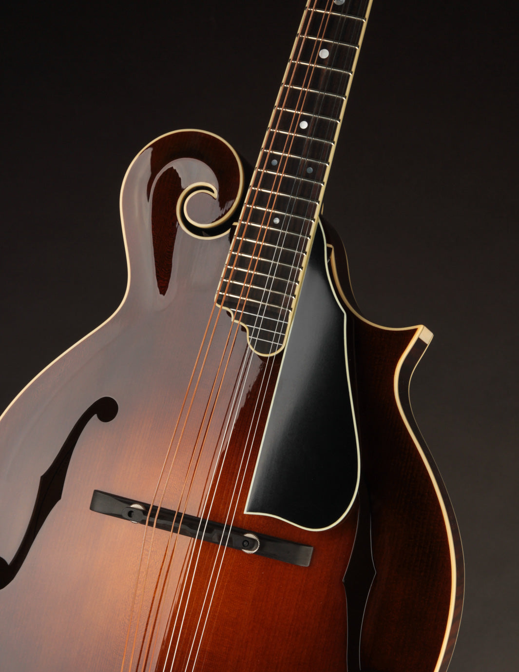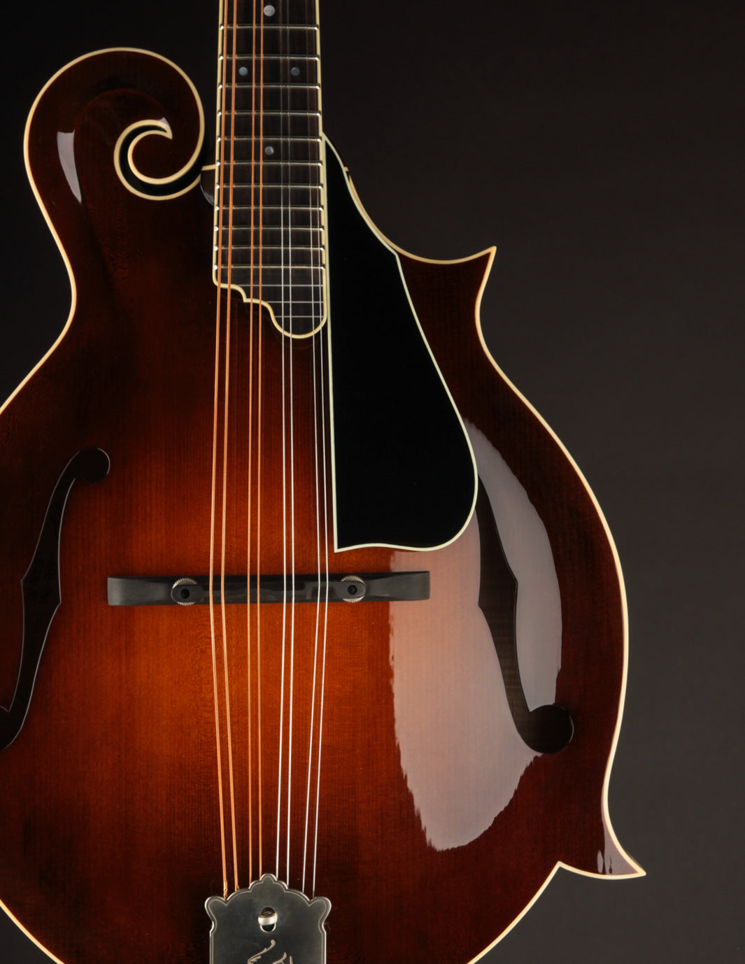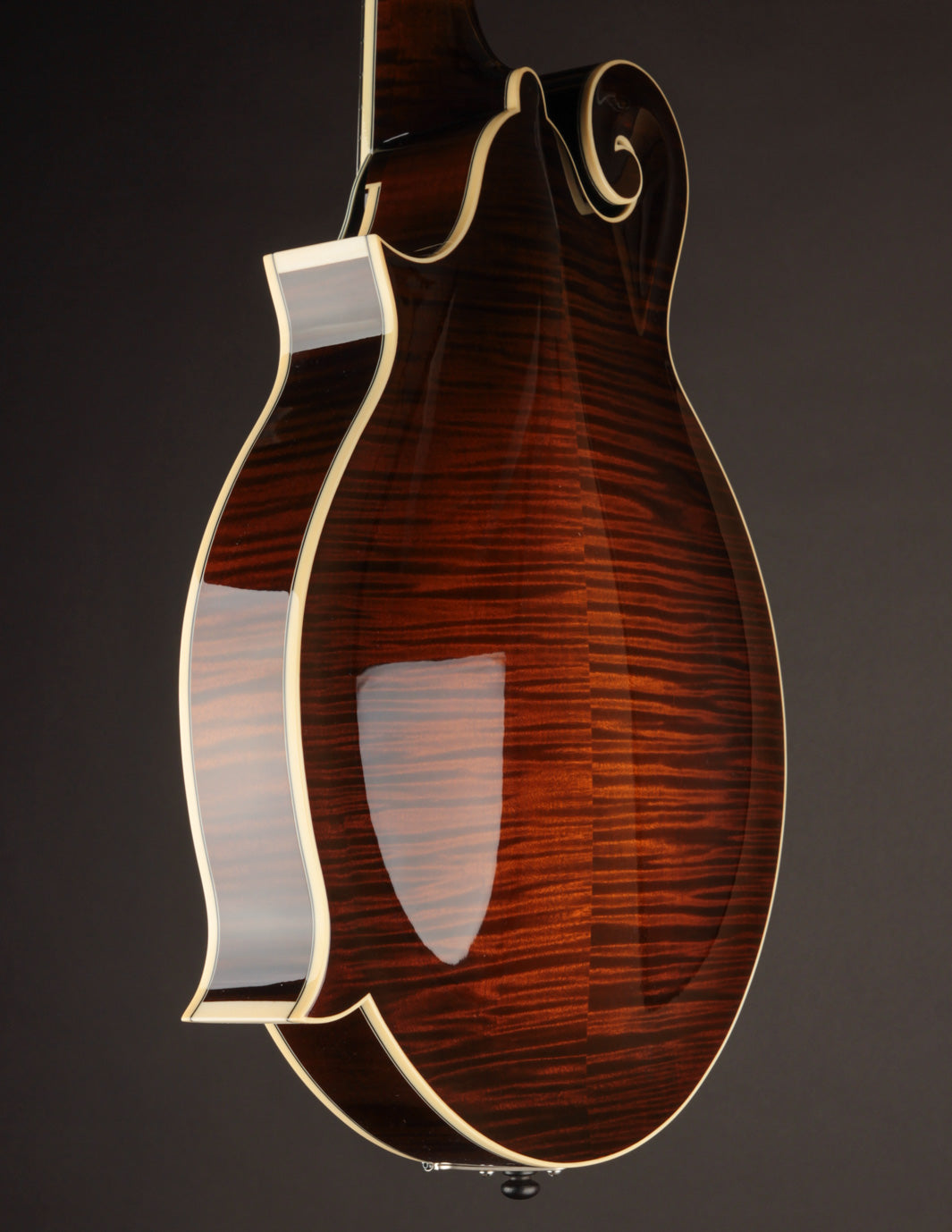 Featuring a slightly enlarged F5 body, the Big Mon is a particularly responsive, airy and open sounding instrument. With a touch more volume and bass response than Northfield's standard F5, this master model mandolin has plenty of power and woody low end.