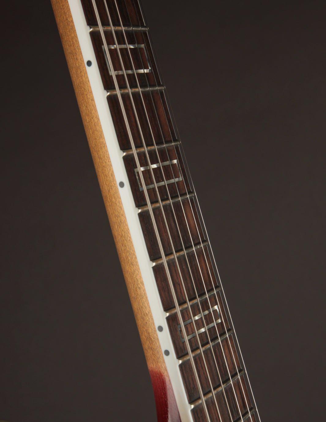 A nod to vintage Rickenbacker styling, the hollow block inlays and full binding frame the build beautifully, while a set of Ron Ellis Ellisonics push things into brighter, snappier territory than its P90-equipped sibling.