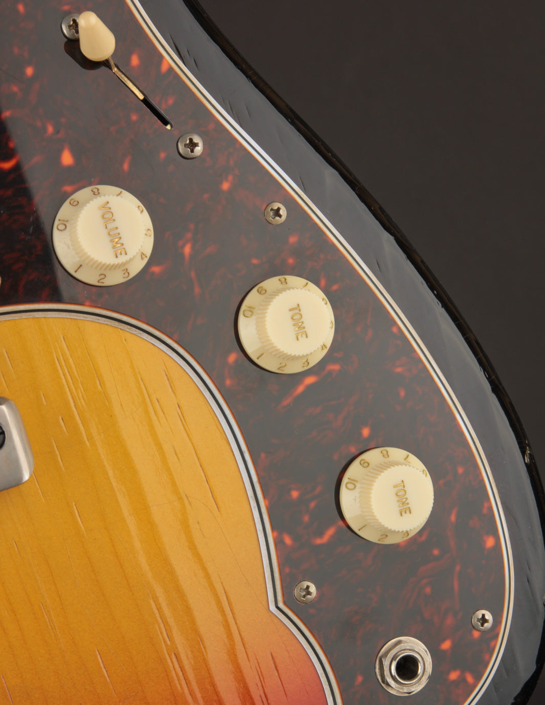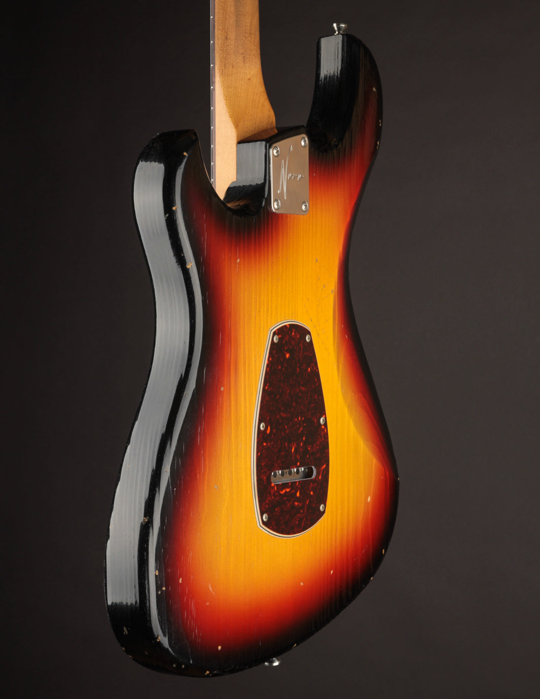 And then there’s the neck. Dennis Fano’s aged finishes are among the best in the game—dry, broken-in, never sticky. The C carve is instantly comfortable, and the 9.5"–14" compound radius with silky fretwork makes for a ridiculously easy player. If you've played a great Danocaster, you're in the ballpark.