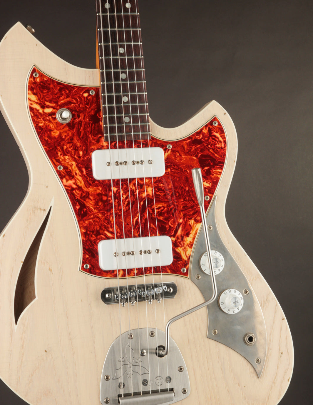Start with the offset silhouette (Jazzmaster-esq vibes), blend in some Rickenbacker lines (cutaways), and layer in Strat-like comfort and playability. Add a touch of Gibson soul, thanks to a pair of Fralin P90s, and you’ve got the Mirus J, a guitar built for players who like to blur the lines.