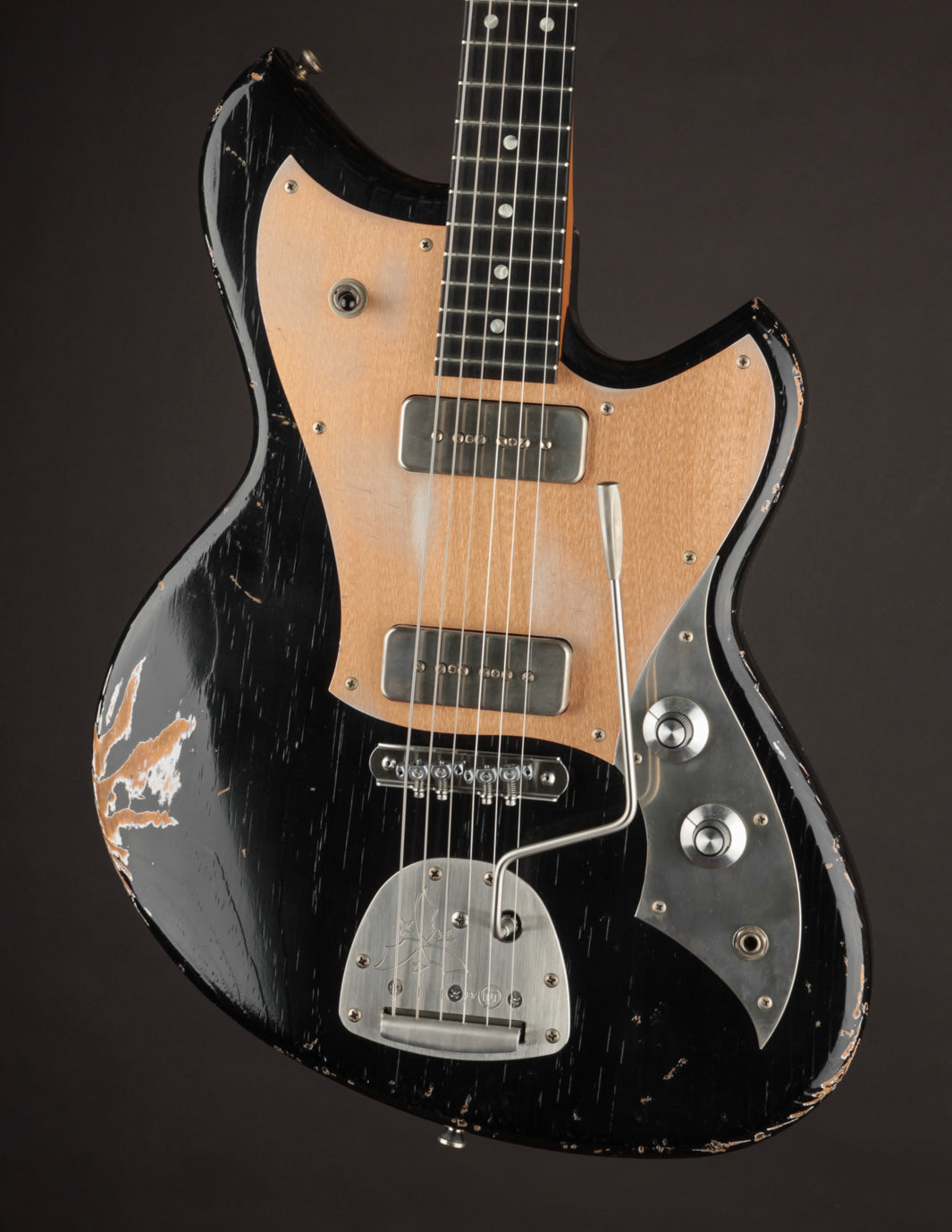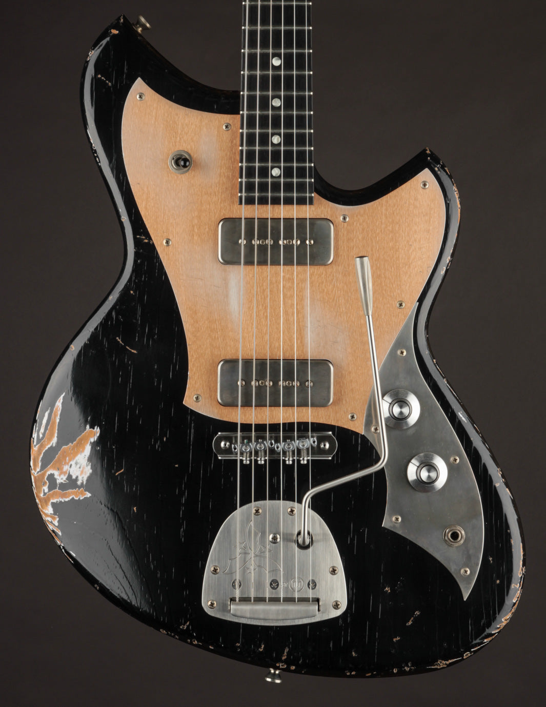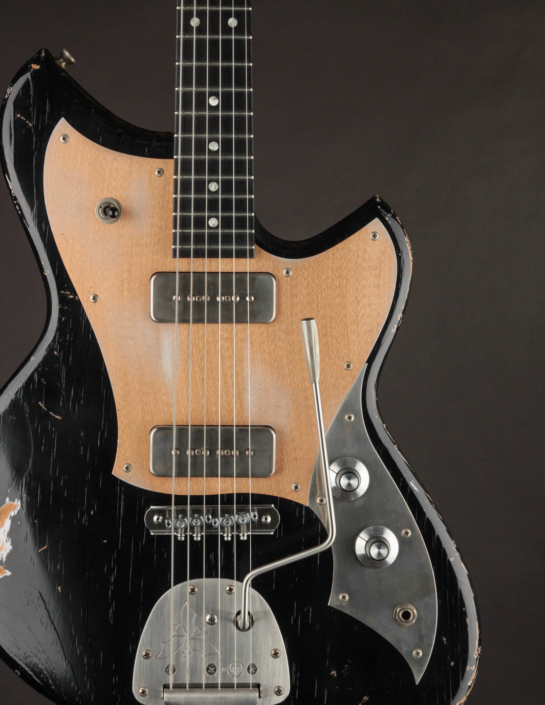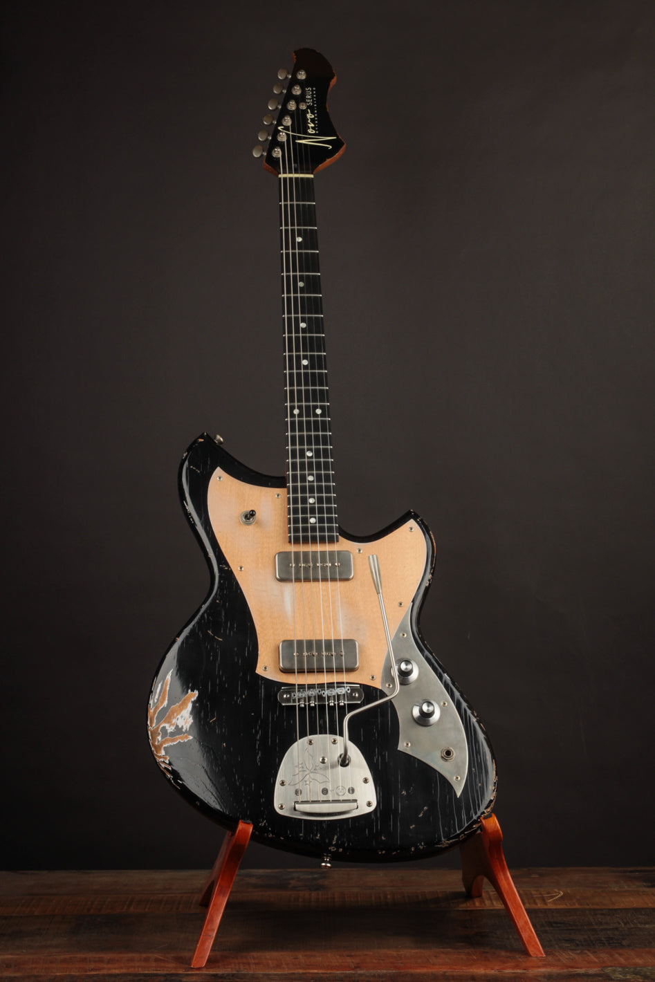 Take this Serus J in Aged Bull Black as an example. With its matching headstock, dark rosewood fingerboard, Mastery trem w/lightening bolt arm, and aged grained aluminum pickguard, it’s a showstopper before you even pick your first note. But make no mistake—this guitar isn’t just about cool looks.