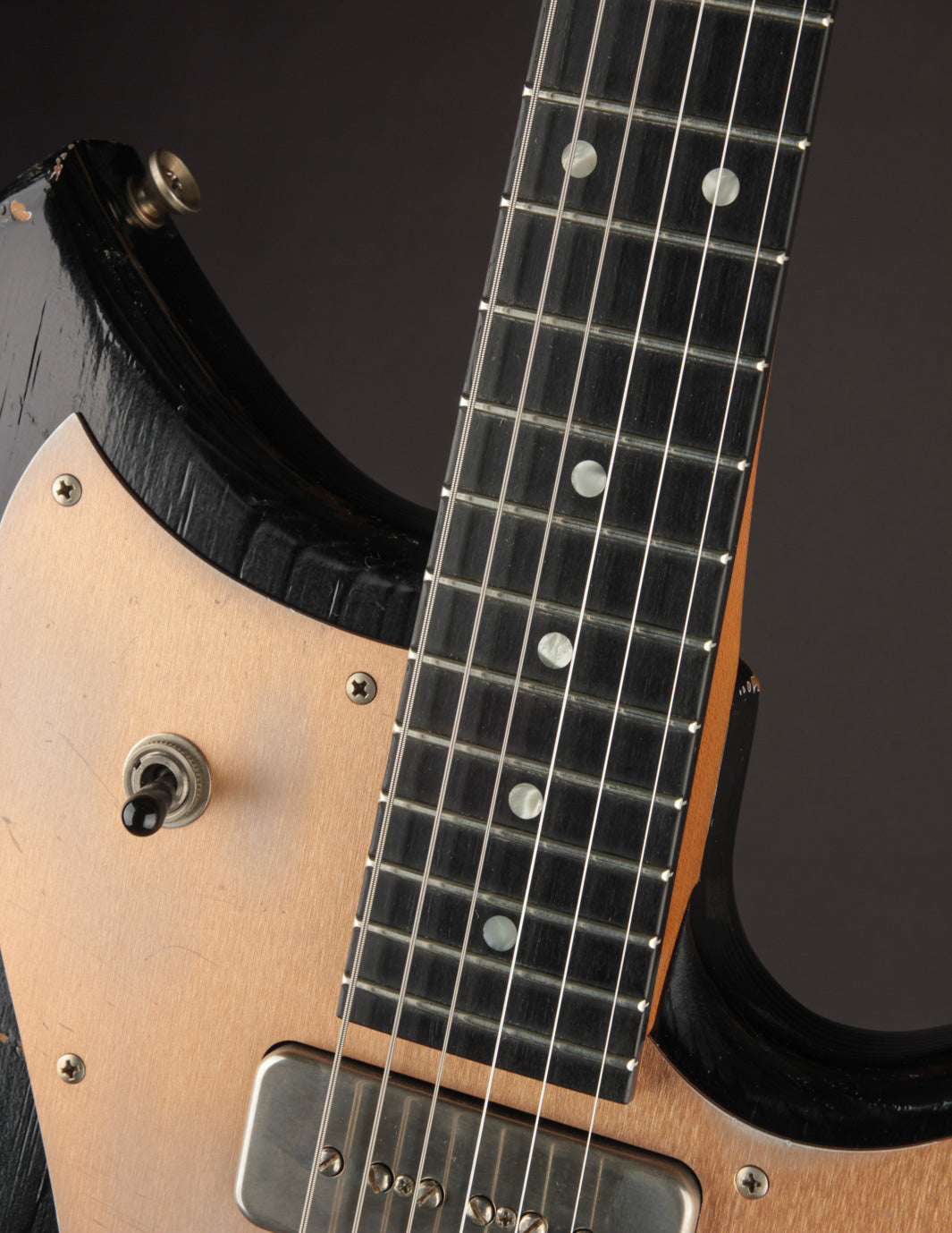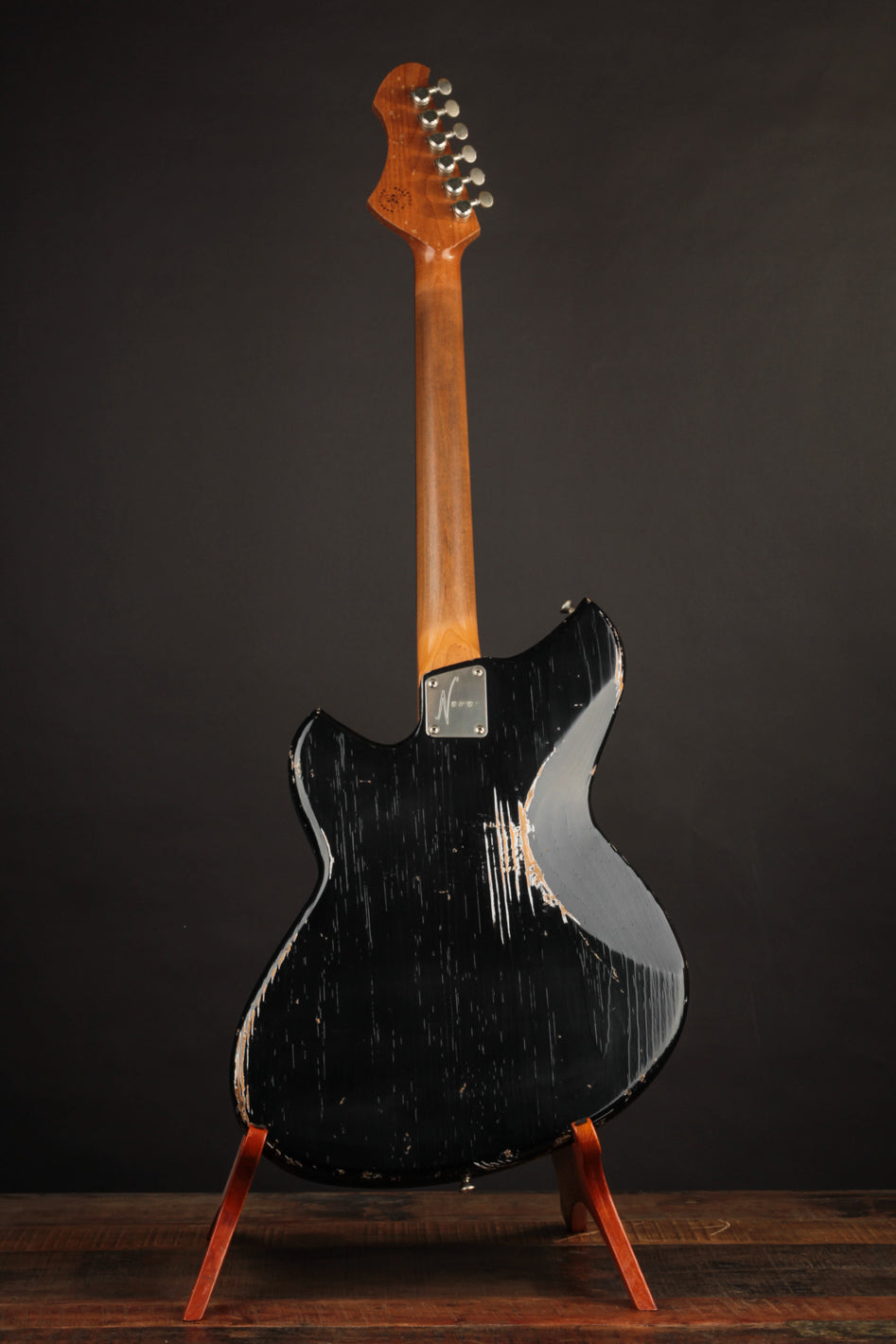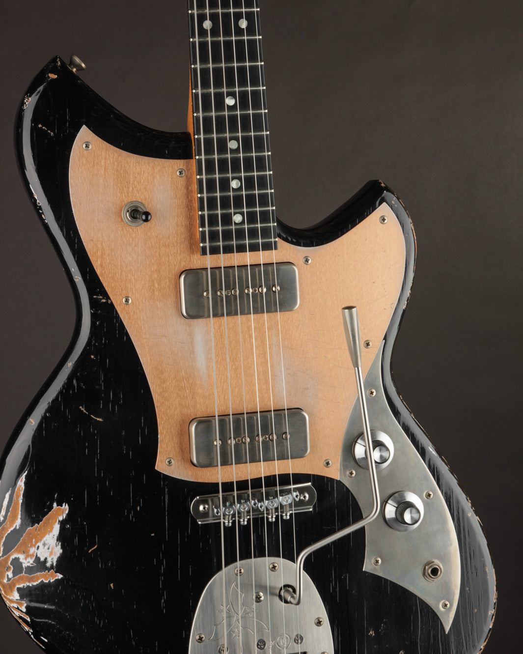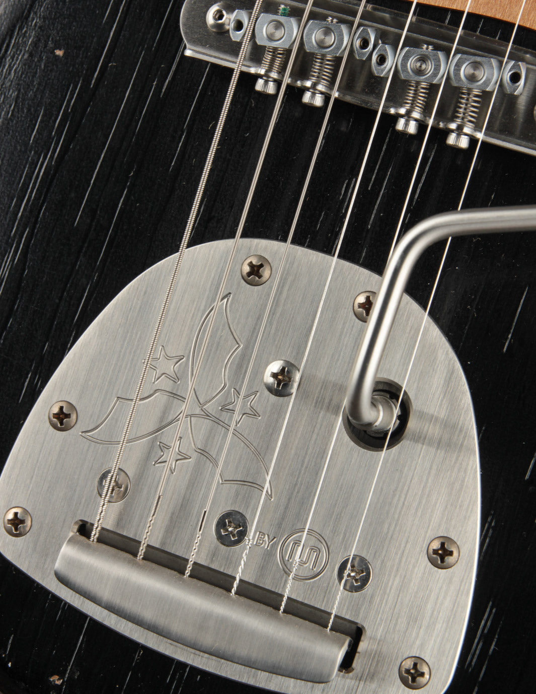 Take this Serus J in Aged Bull Black as an example. With its matching headstock, dark rosewood fingerboard, Mastery trem w/lightening bolt arm, and aged grained aluminum pickguard, it’s a showstopper before you even pick your first note. But make no mistake—this guitar isn’t just about cool looks.