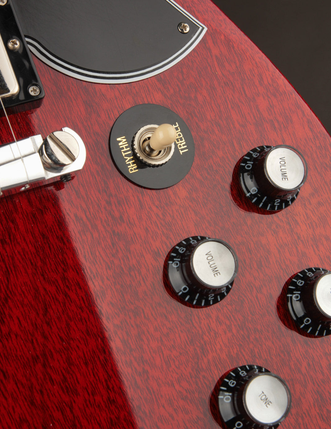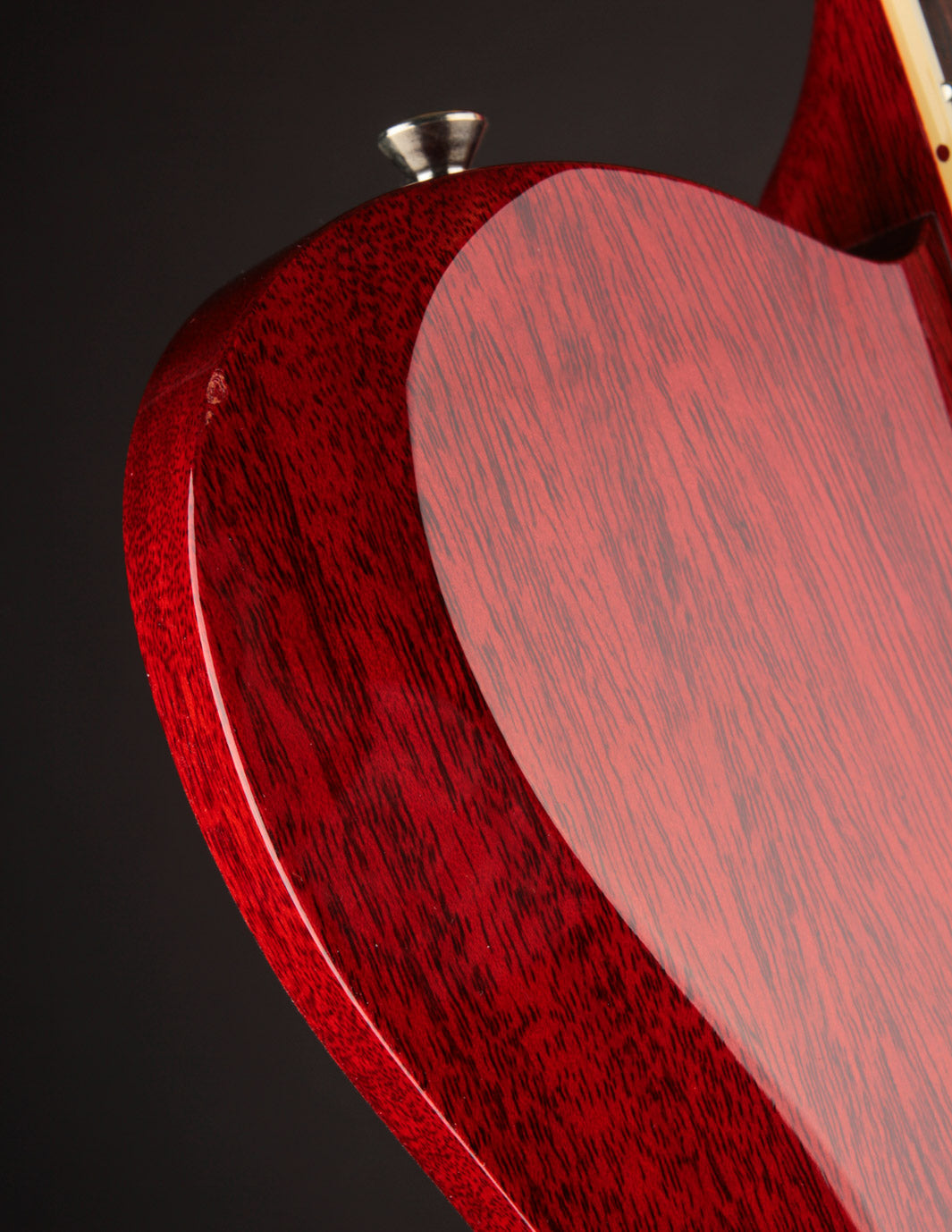 Using Damian Probett's equally cool Meteor model as a jumping off point - think set neck Tele - the SG-Teor folds in, you guessed it, some SG-isms via the top carve and the slim body profile.