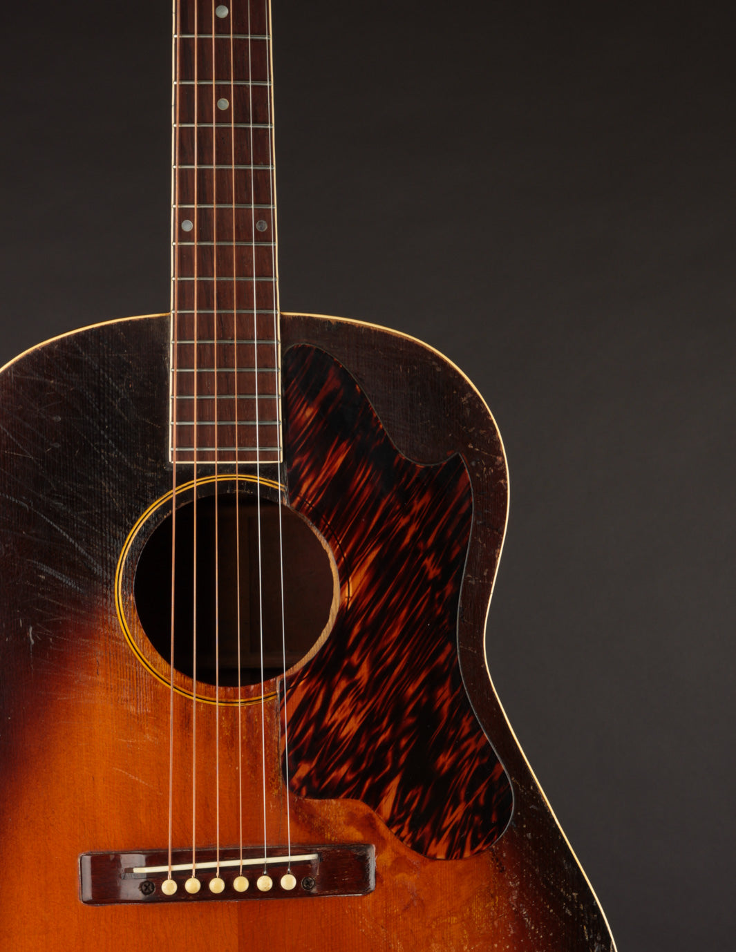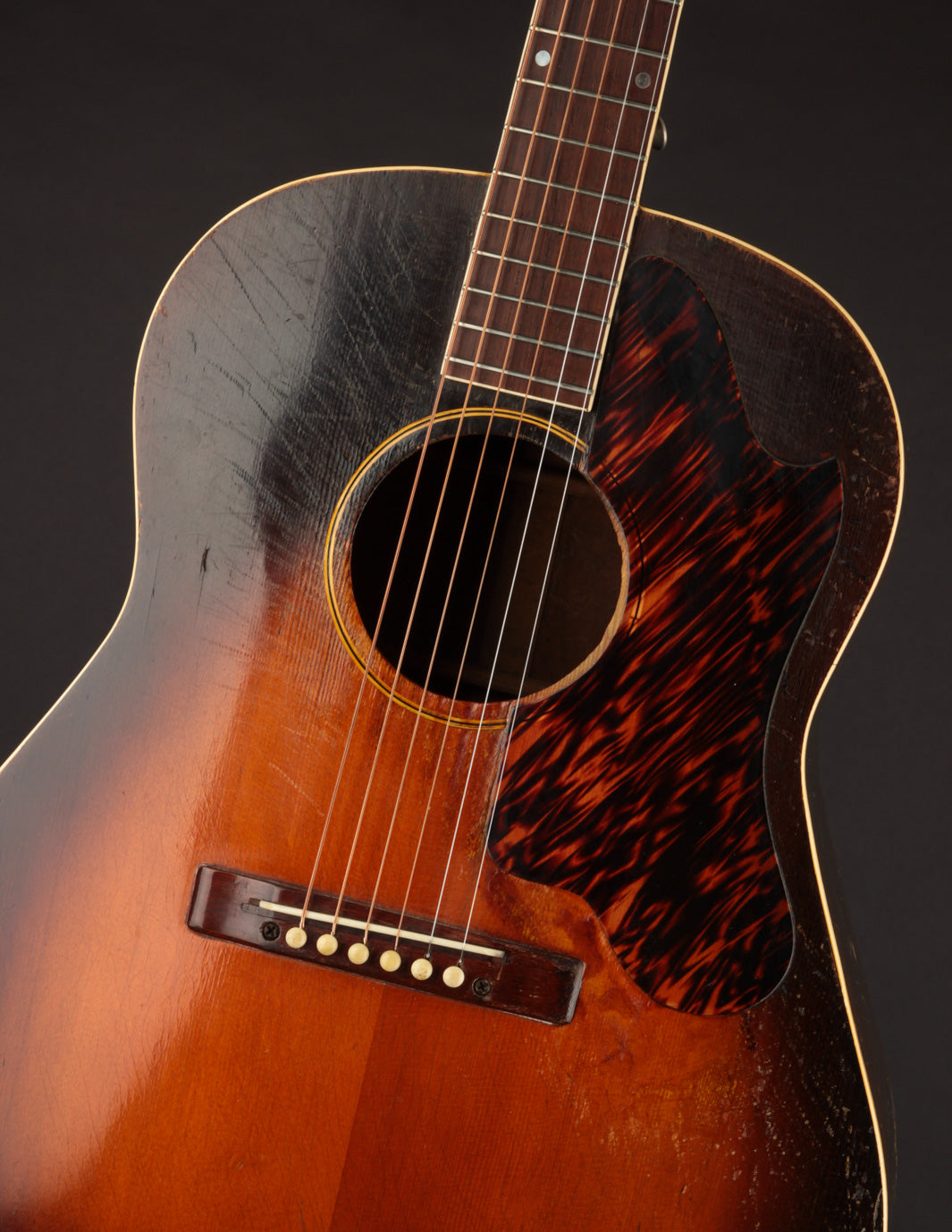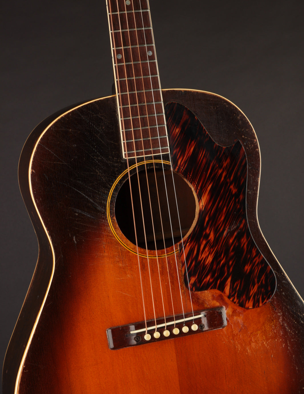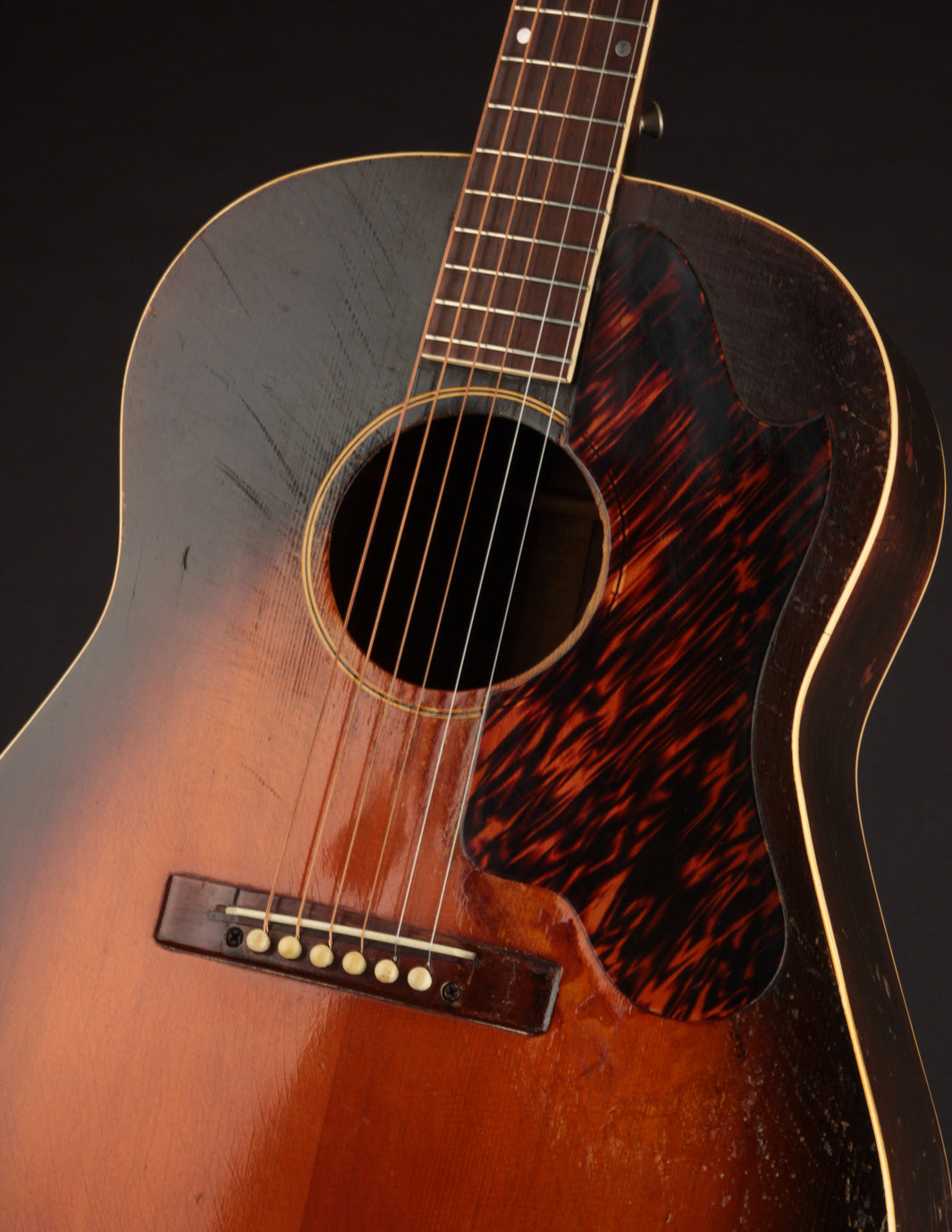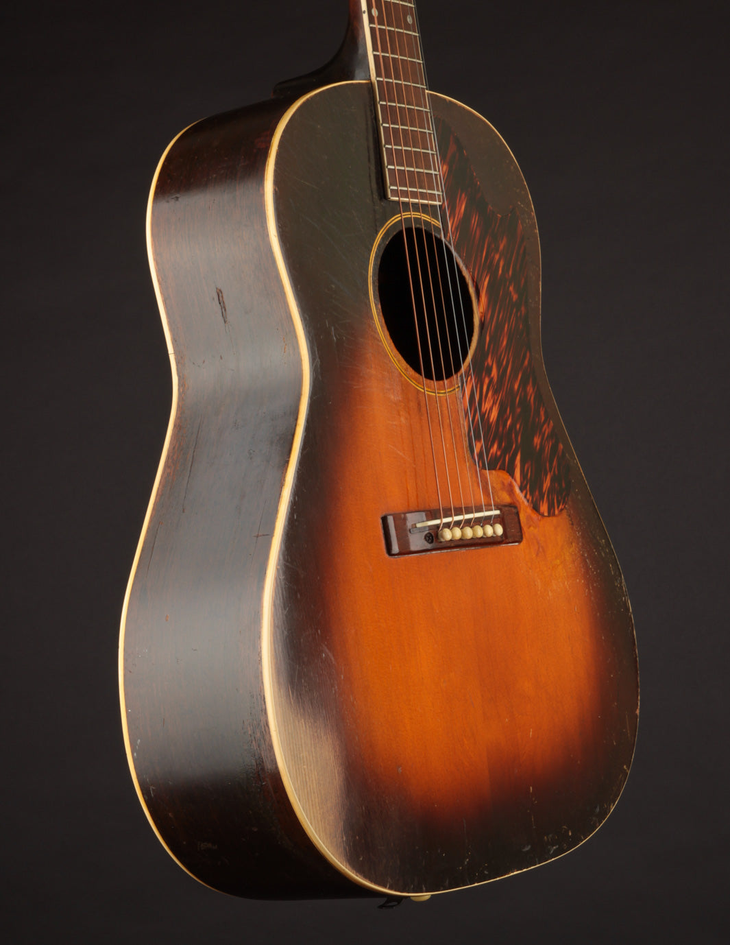 The sound is everything a Gibson devotee craves: booming bass, a dry, hollow midrange, and a bright, present high-mid & treble register. It's a great flatpicking guitar, with the sort of warm, familiar sound that'll have you lost in cowboy-chord dreamland from first strum. Priced with non-original hard case.