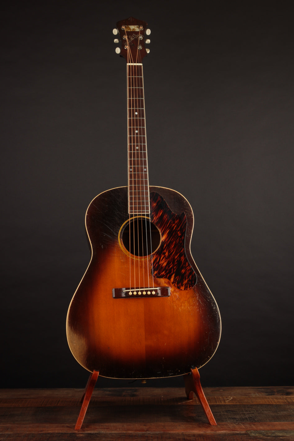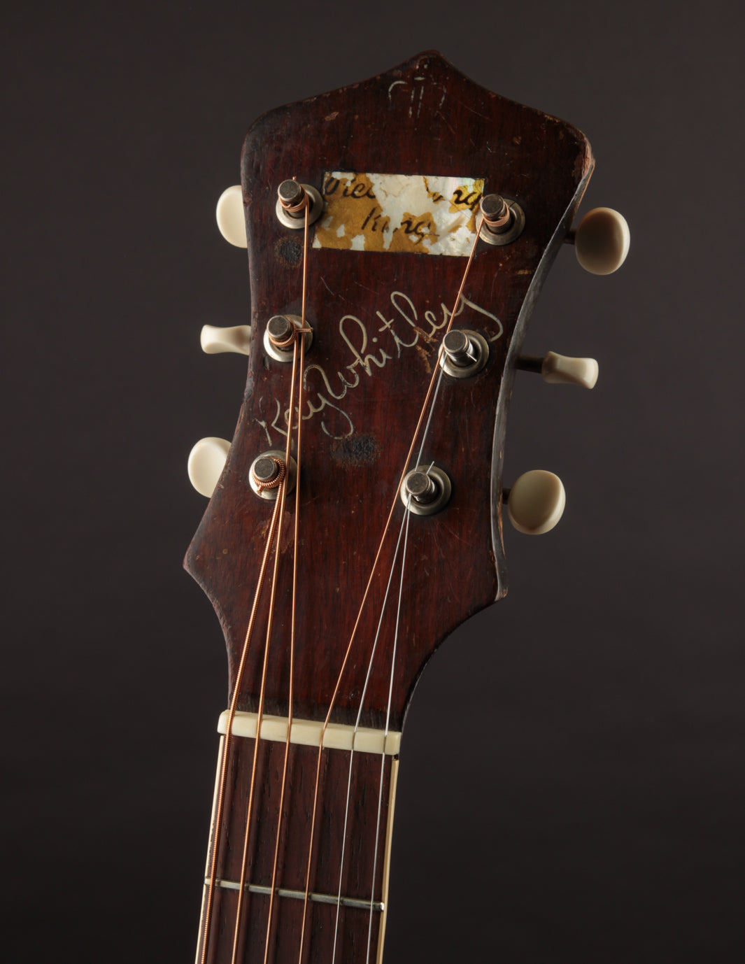 This Recording King Ray Whitley Model 1028 has just come into the shop in trade ~ and vaulted itself right to the top of the staff favorite list. Made by Gibson, but distributed via the Montgomery Ward catalog, the Model 1028 feels and responds every bit like a J-55 or Advanced Jumbo from this period.