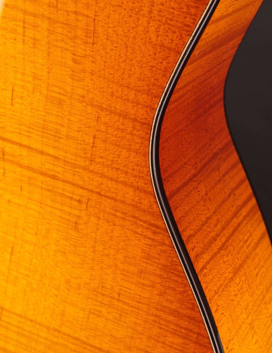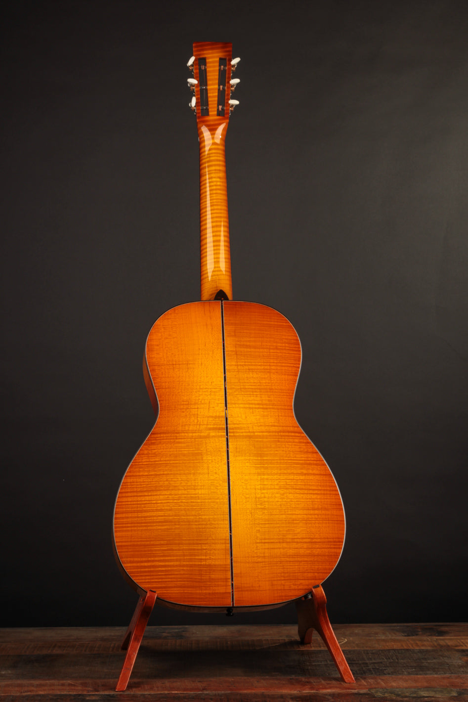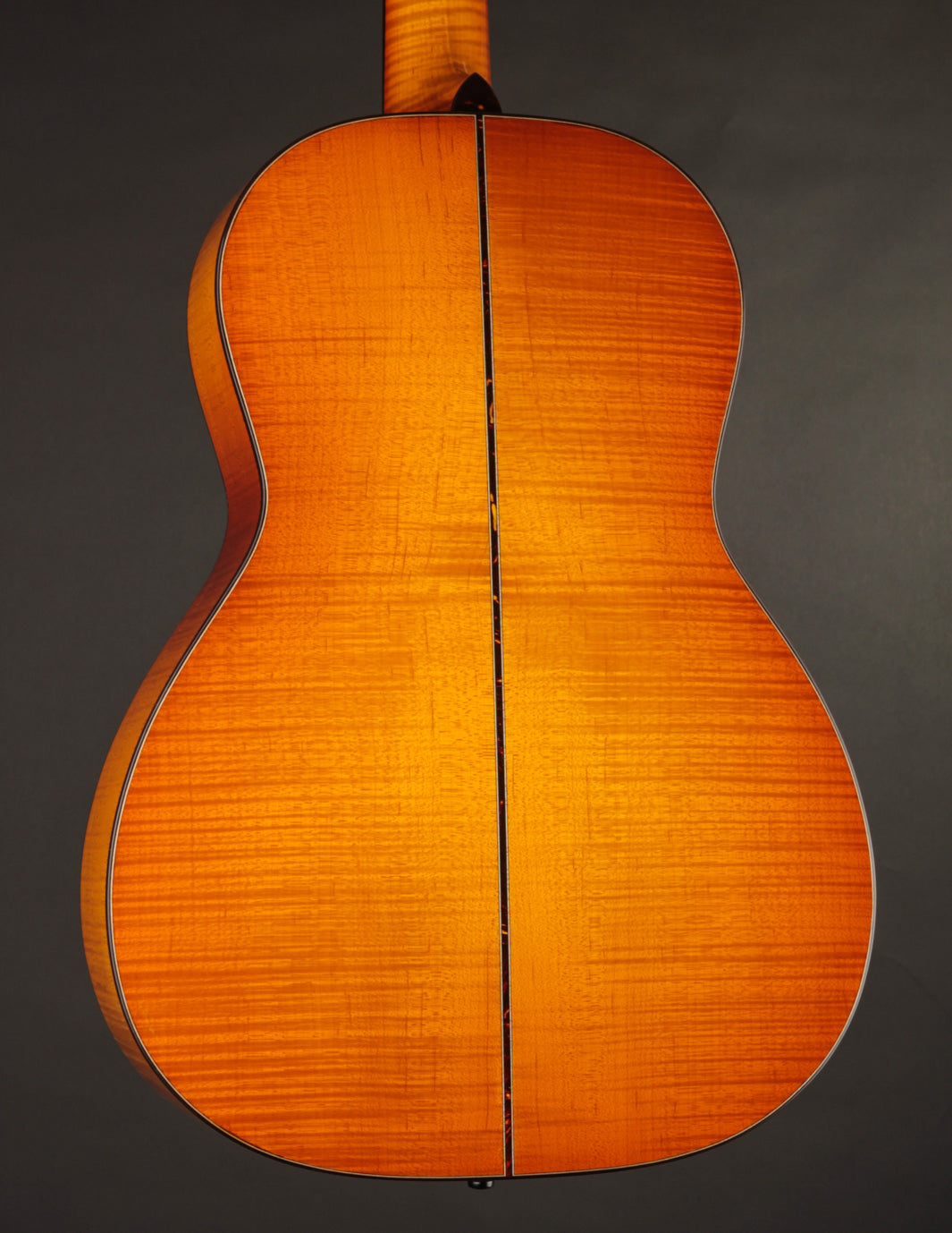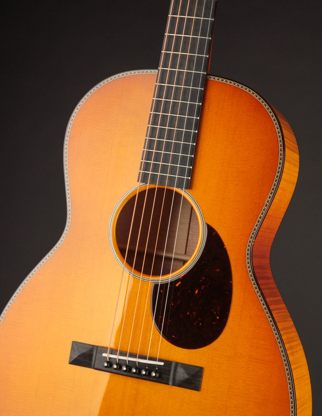 This Santa Cruz 00 will spoil you. Exquisite, refined, effortless—not often the first words that spring to mind when describing small-bodied maple guitars, but there it is. Props to our friends in SoCal for how beautifully this 00 turned out. Uber lightweight, the figured maple makes for a guitar with a lightning fast response. In combination with the old-growth sitka top, this is a guitar with serious warmth, depth of tone, and sustain belying its size. Multicolored overtones and a fundamental punch to cut through the most densely cluttered mix. Intrigued? You should be. The current shop favorite small-bodied guitar!