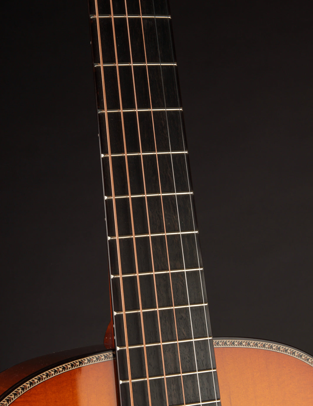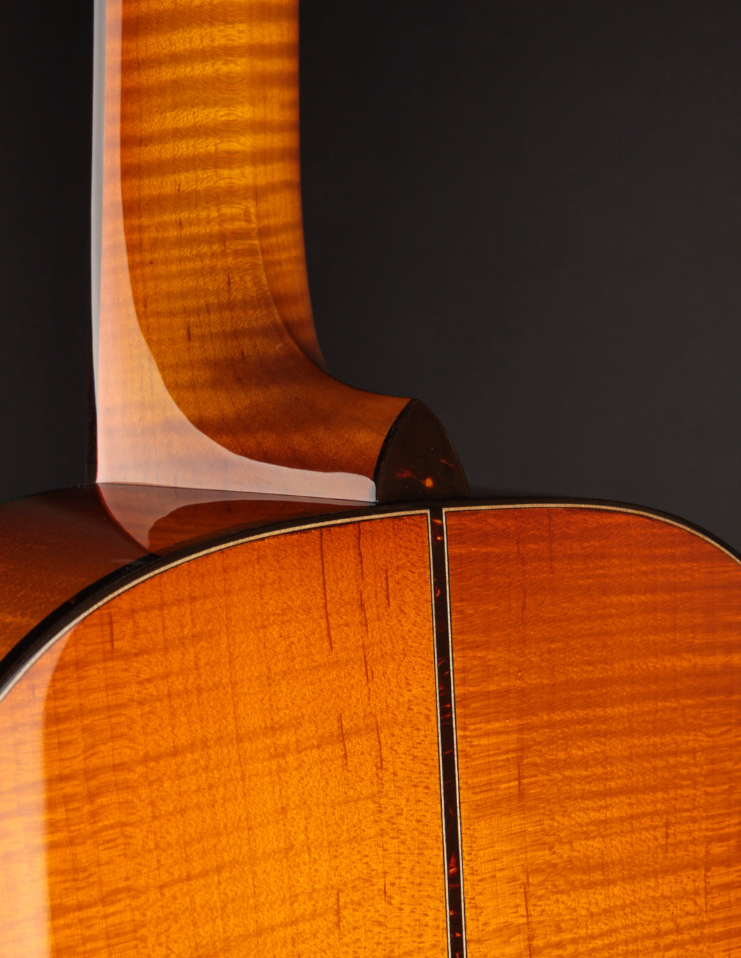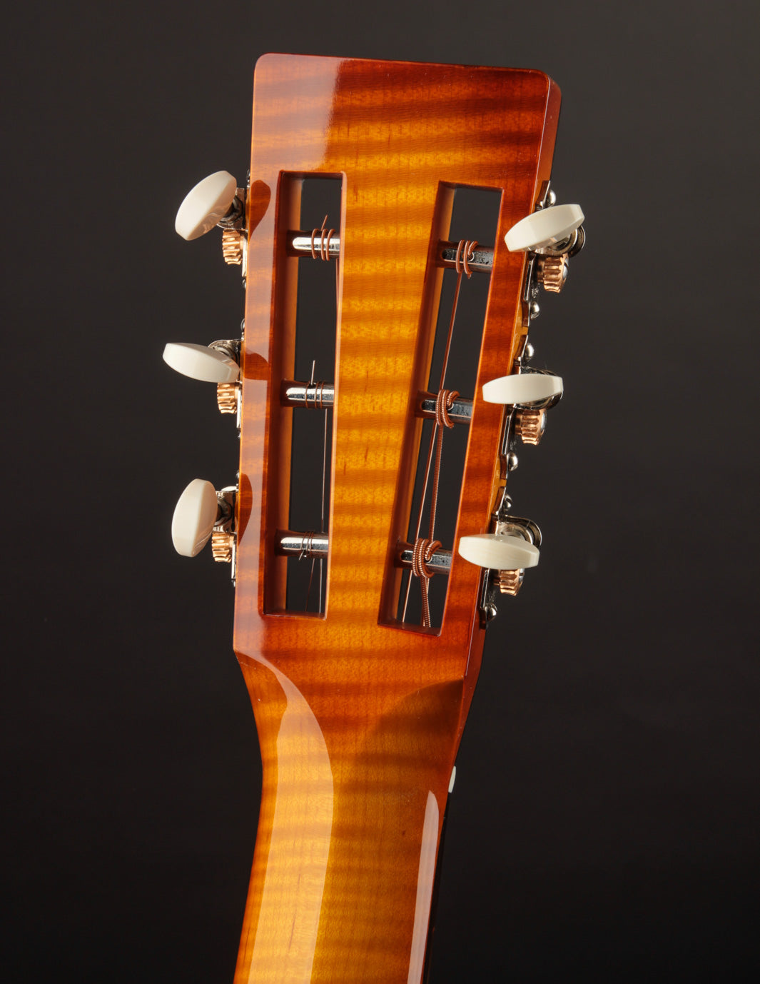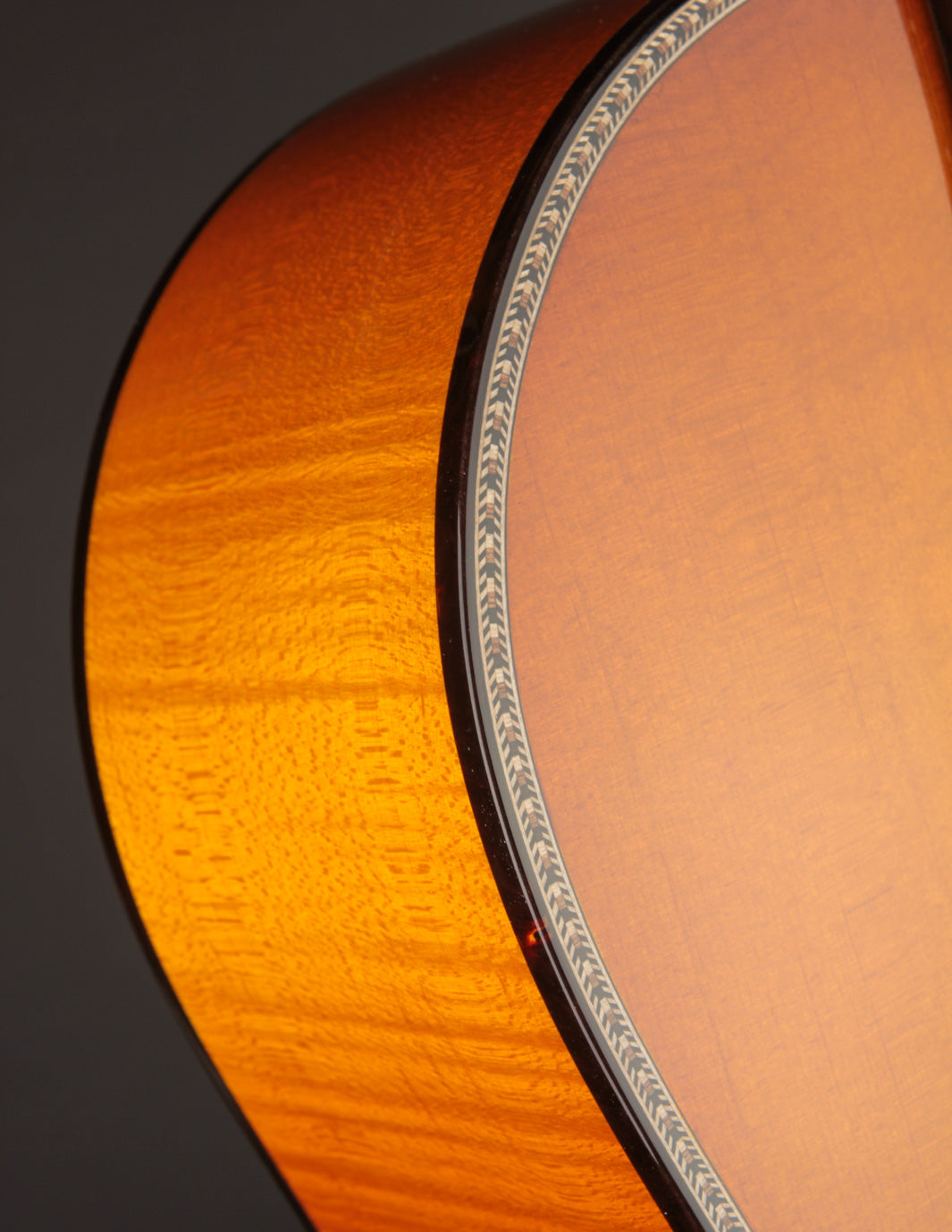 This Santa Cruz 00 will spoil you. Exquisite, refined, effortless—not often the first words that spring to mind when describing small-bodied maple guitars, but there it is. Props to our friends in SoCal for how beautifully this 00 turned out. Uber lightweight, the figured maple makes for a guitar with a lightning fast response. In combination with the old-growth sitka top, this is a guitar with serious warmth, depth of tone, and sustain belying its size. Multicolored overtones and a fundamental punch to cut through the most densely cluttered mix. Intrigued? You should be. The current shop favorite small-bodied guitar!
