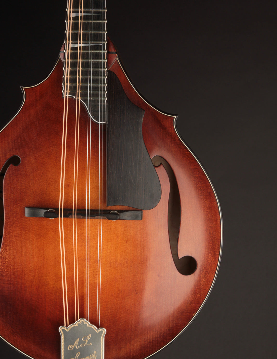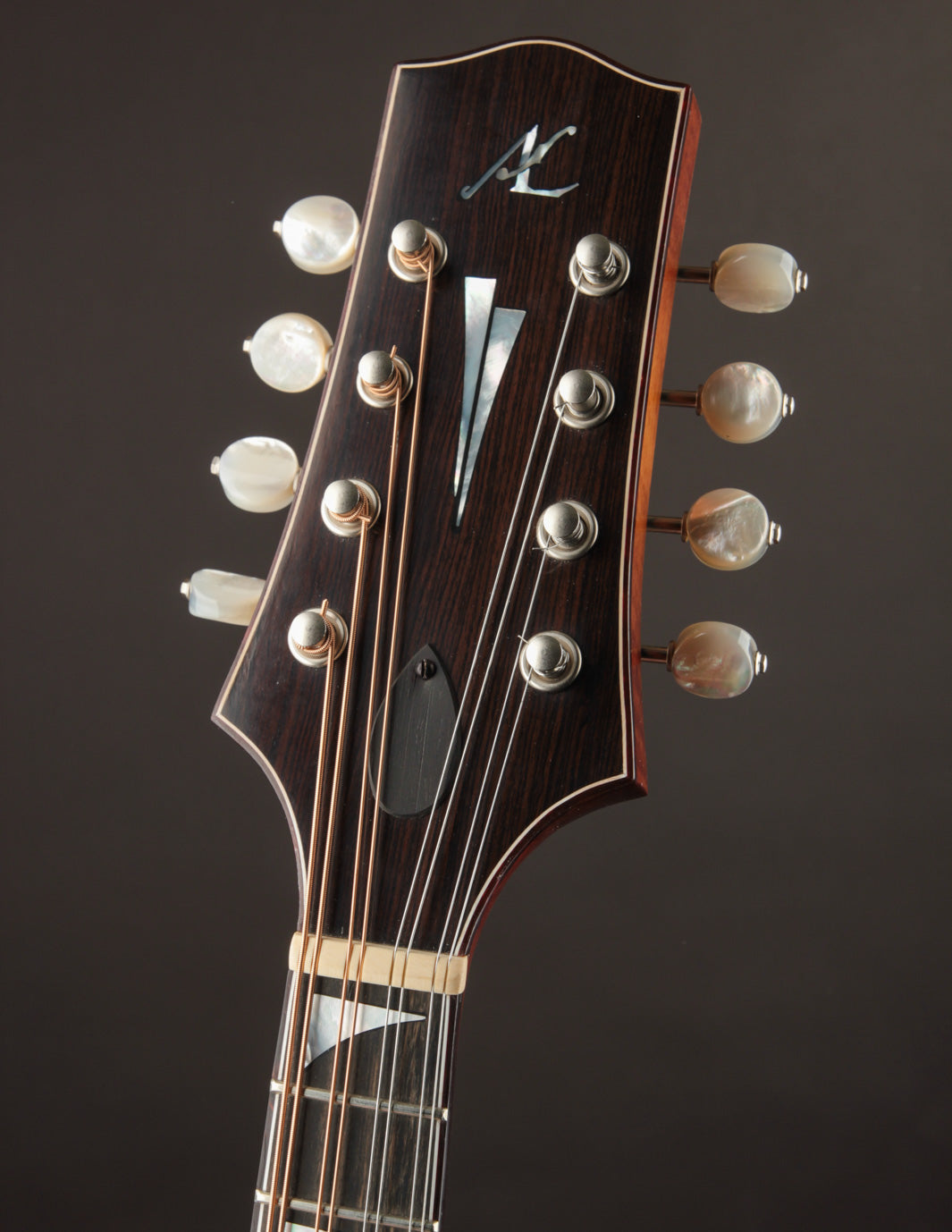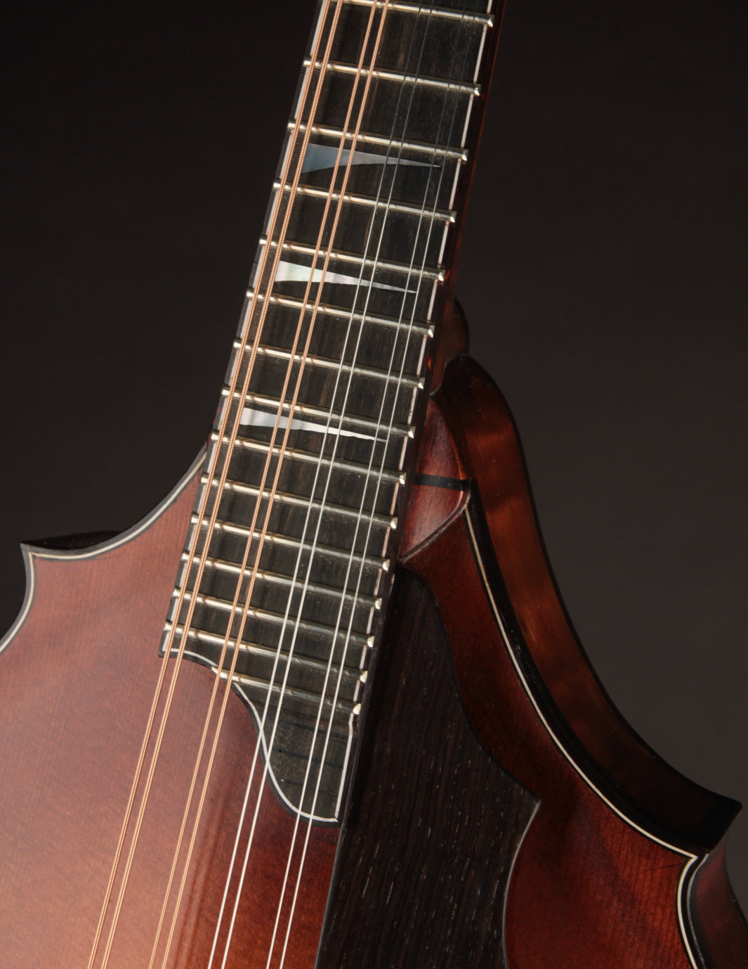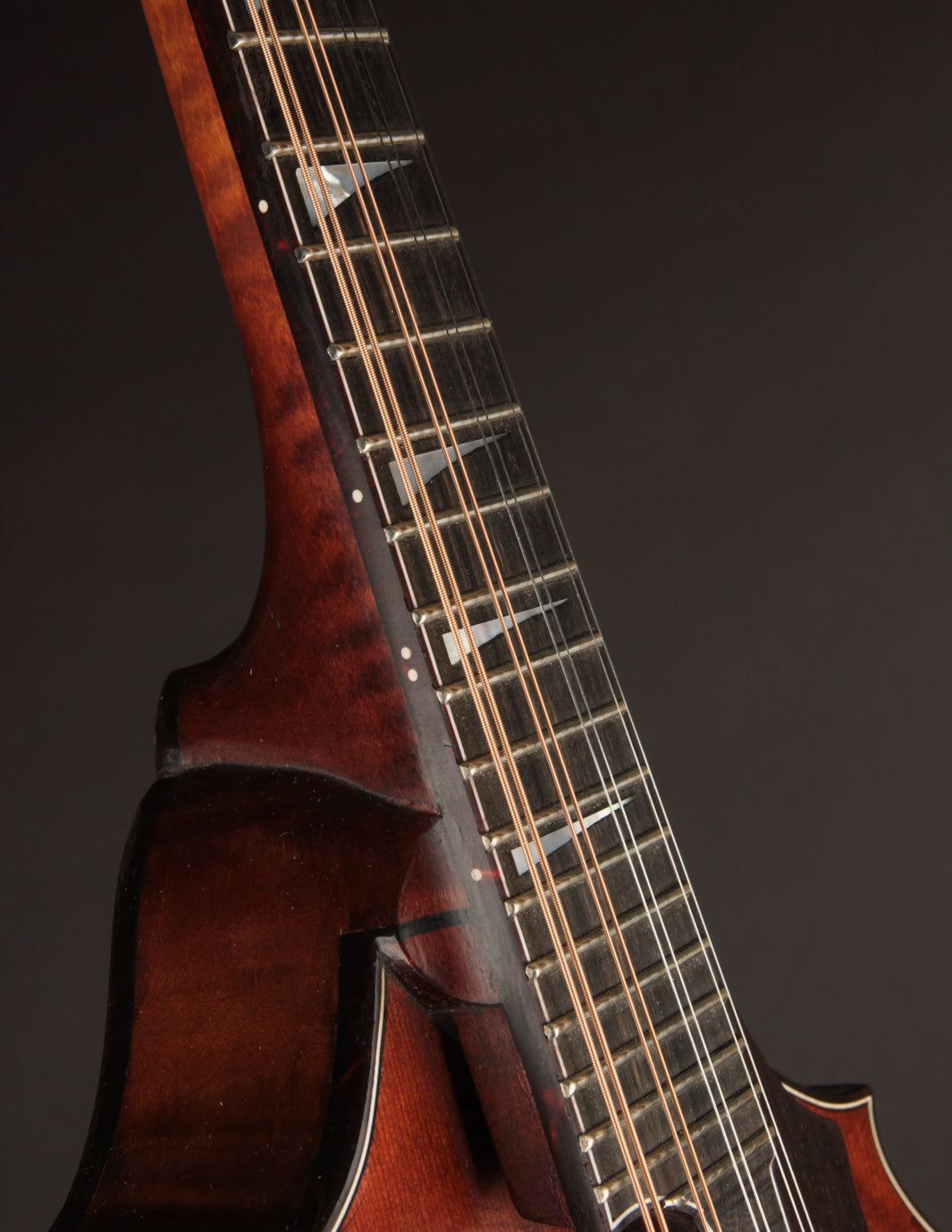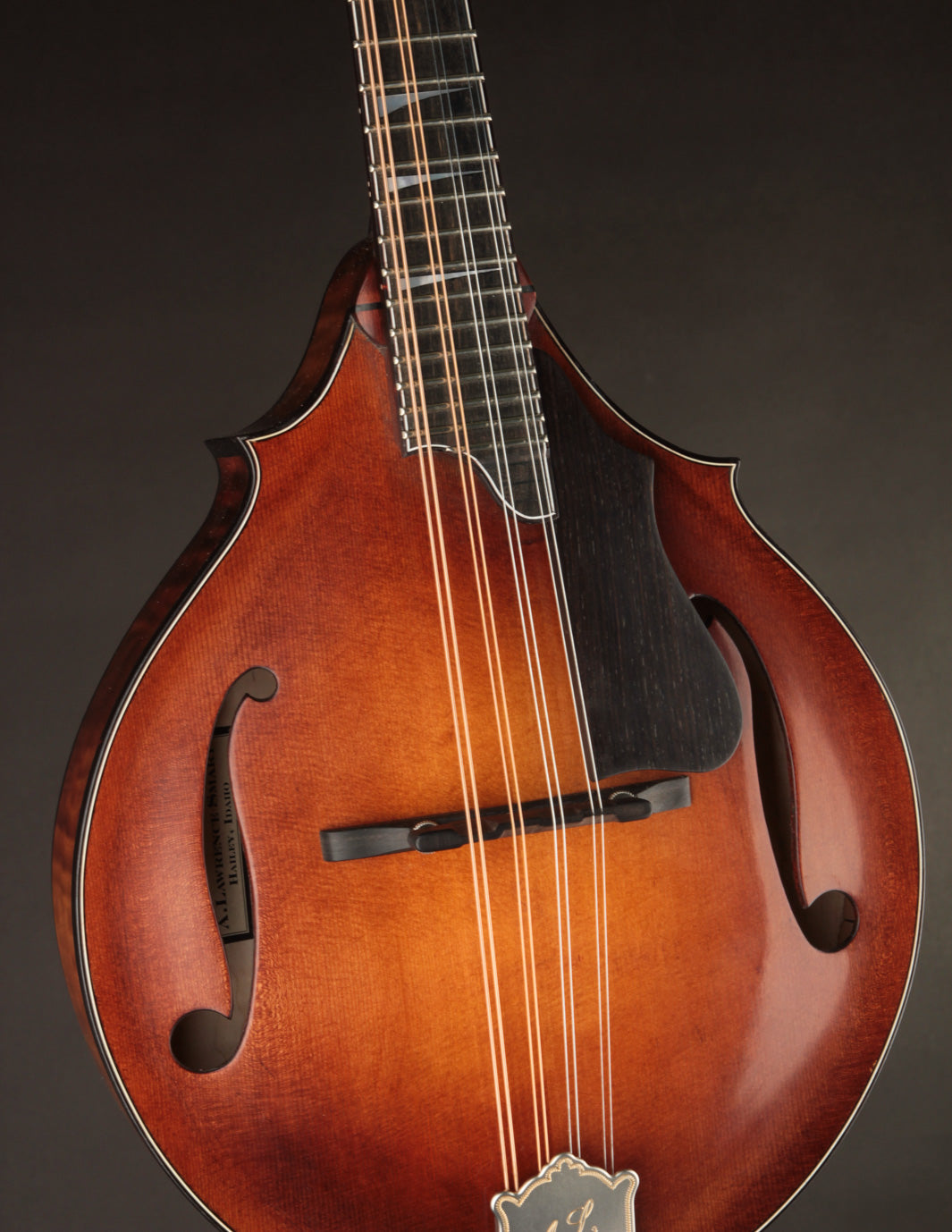 We are excited to offer this brand new two-point direct from Lawrence Smart! This mandolin features an asymmetrical two-point body design, tastefully adorned with an Art Deco headstock inlay and tapered fingerboard markers. Lawrence's varnish finish offers a wonderful, handmade look, complementing the sweeping lines of the body design and appointments.