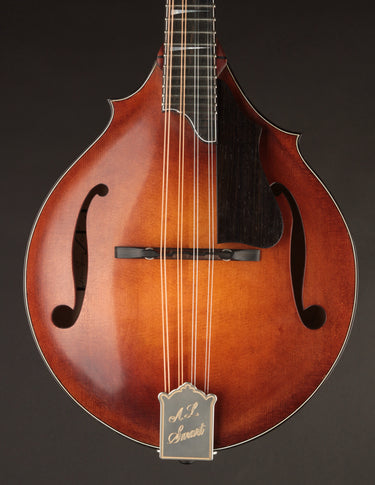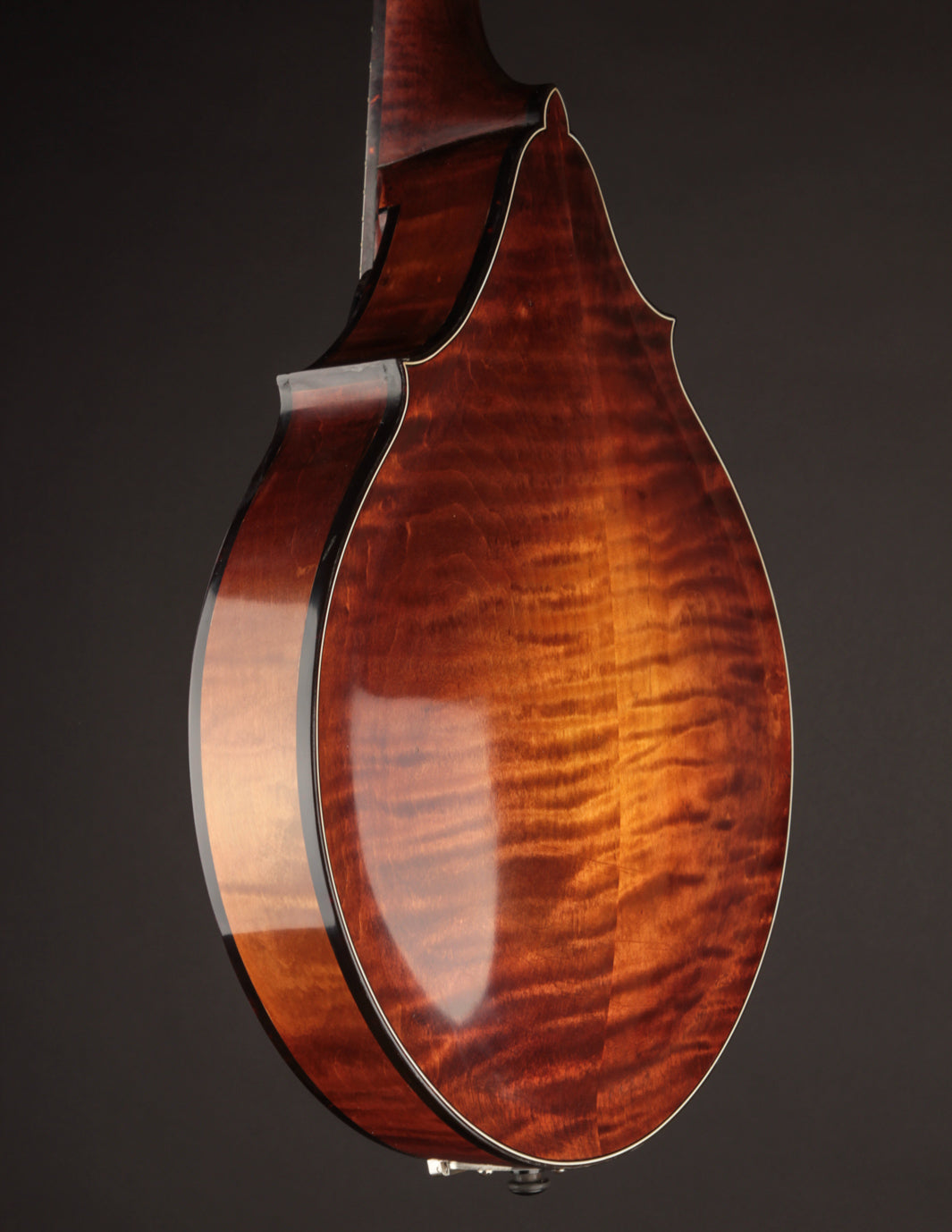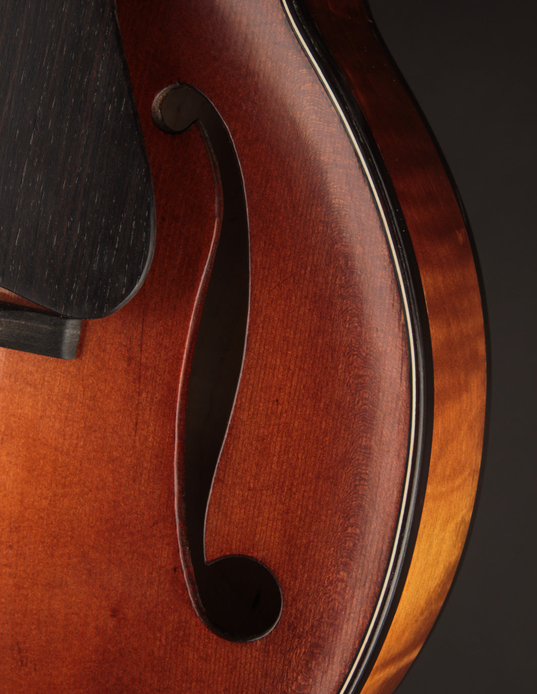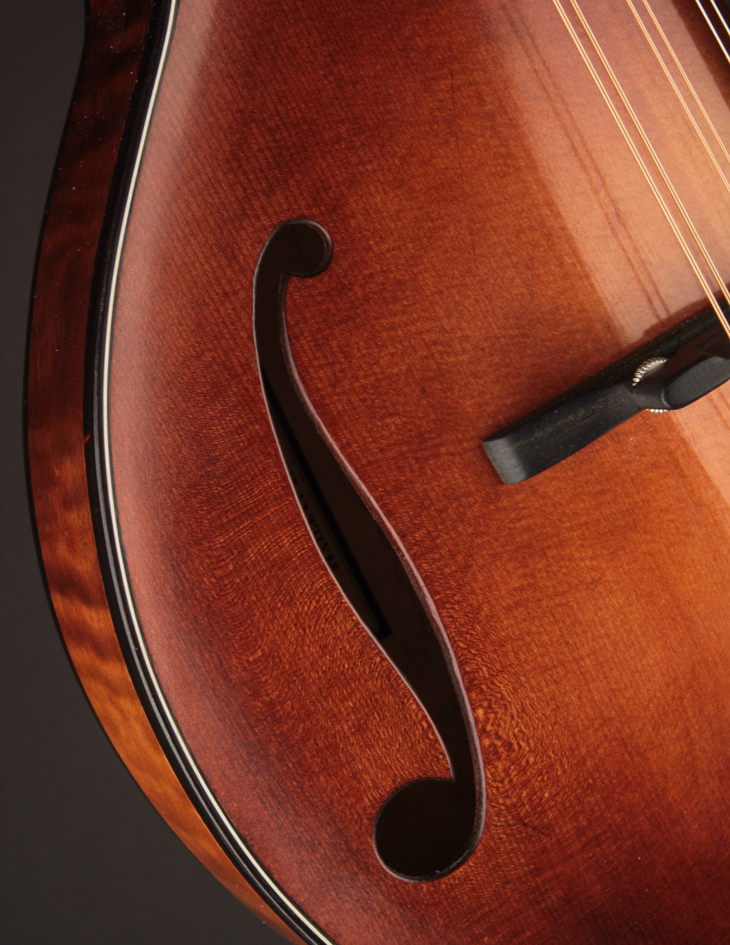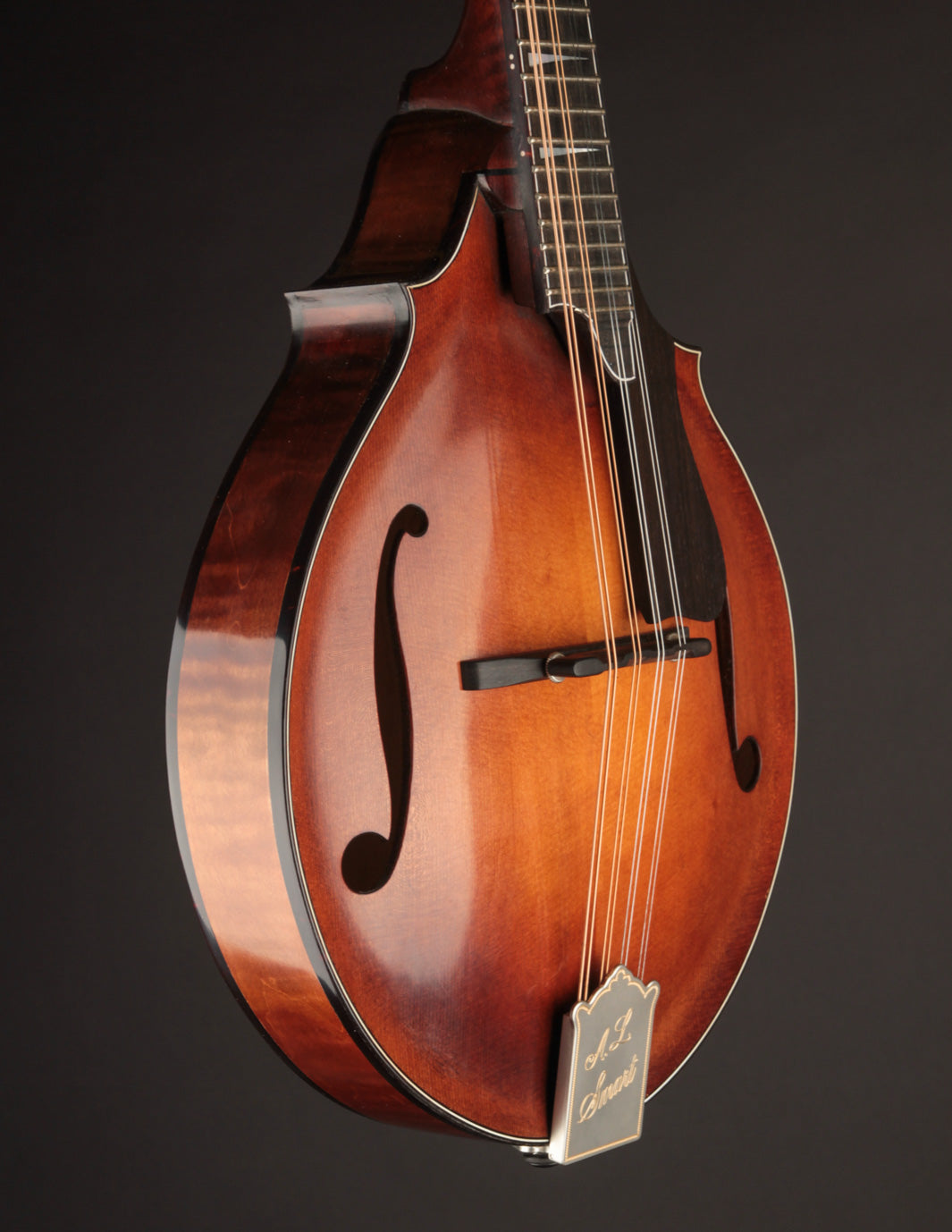 We are excited to offer this brand new two-point direct from Lawrence Smart! This mandolin features an asymmetrical two-point body design, tastefully adorned with an Art Deco headstock inlay and tapered fingerboard markers. Lawrence's varnish finish offers a wonderful, handmade look, complementing the sweeping lines of the body design and appointments.