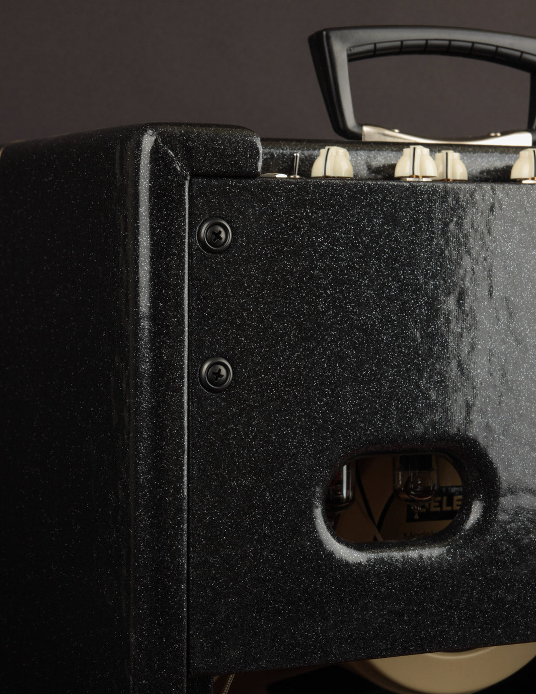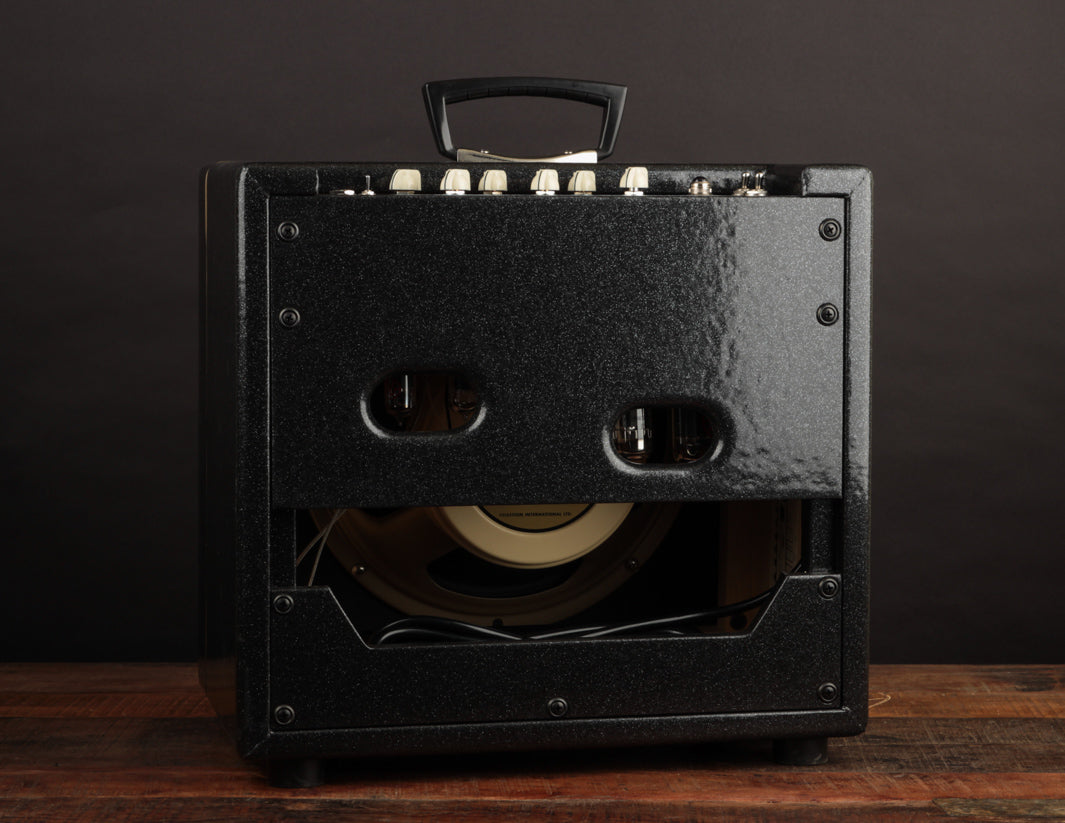 Our second style in the Antares series showcases this wonderful circuit in a more unique aesthetic, featuring a Deep Space black sparkle covering. Paired up with a Celestion Creamback 12" speaker, you're rewarded with tight low end response, robust midrange, and a smooth top end - a modern classic ceramic speaker quite frankly. This is a tighter, more focused sounding speaker than the Ruby Alnico, and has a bit more punch and authority at volume comparatively. Having a bit of the British flavor in the Celestion paired with a harmonically-rich 6V6 driven amp afford lots of versatility in a compact and powerful package.