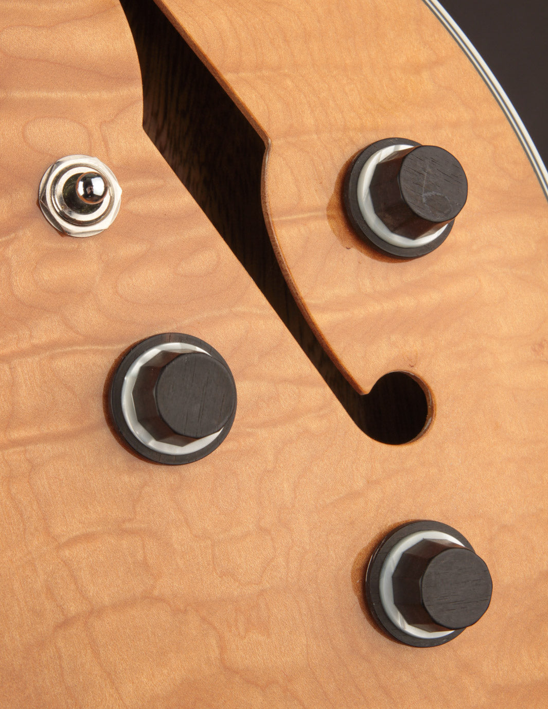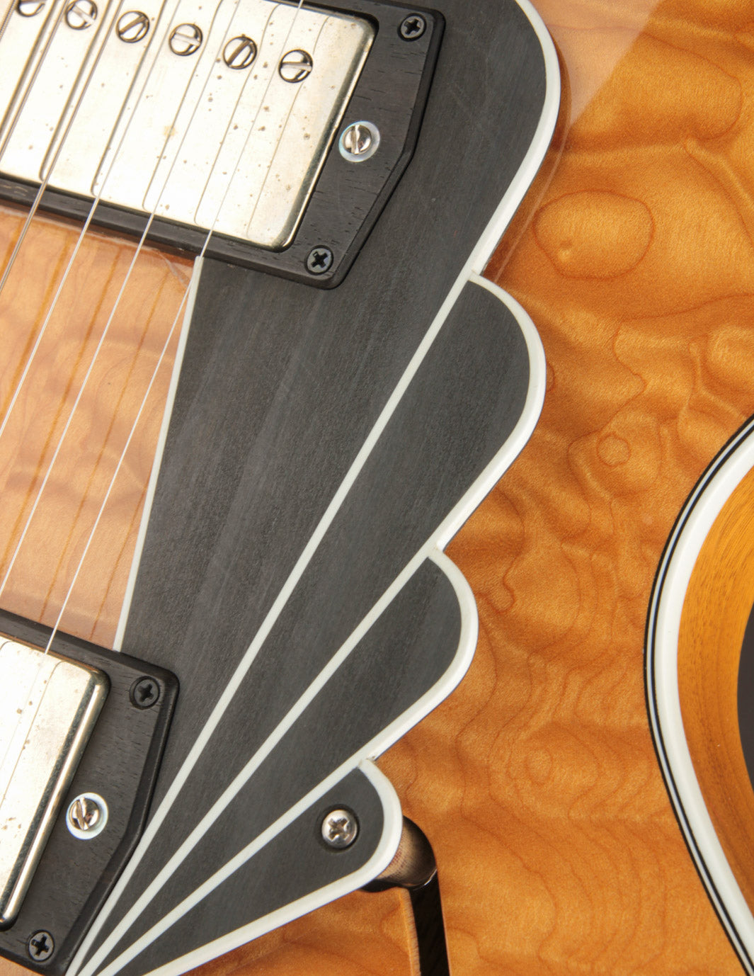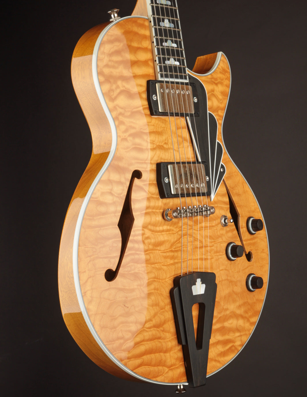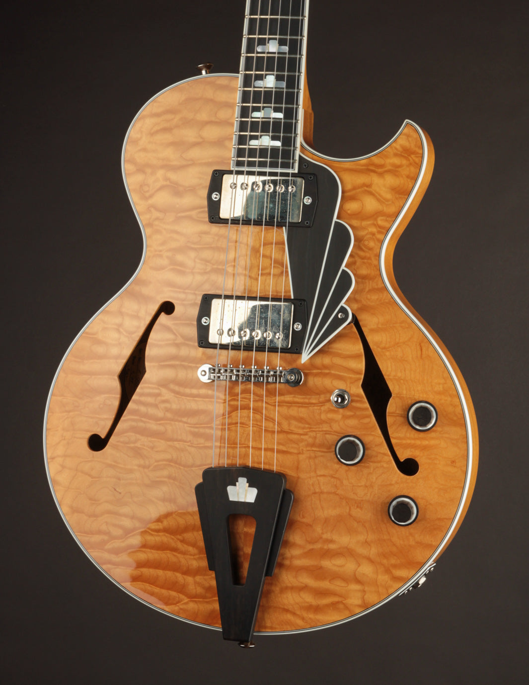 From its deco-inspired appointments, which include - custom ebony knobs, pickup surrounds, tailpiece, fingerboard inlays, a gorgeous pickguard - to its shimmering finish and tailored proportions, this guitar is visually breathtaking. But looks are just the beginning.