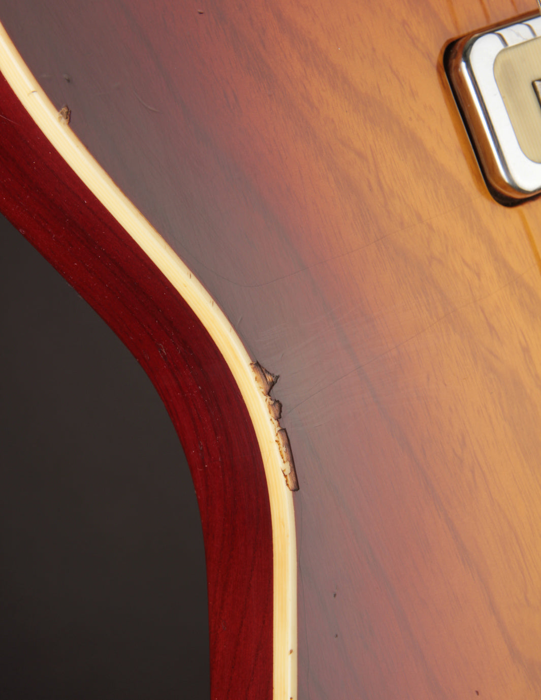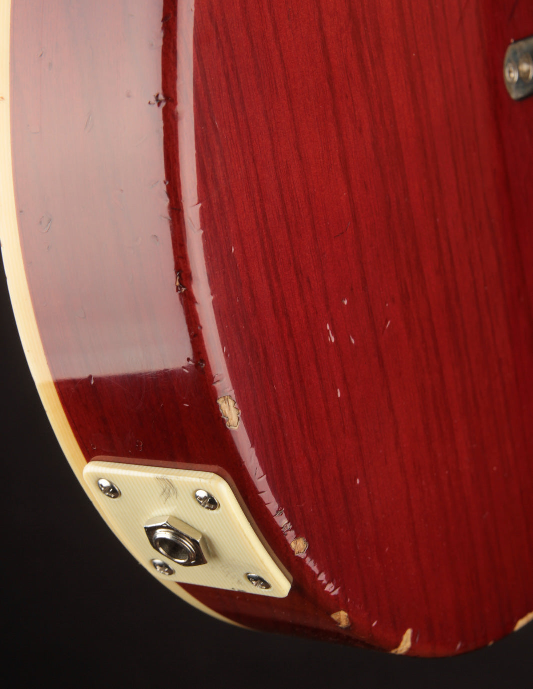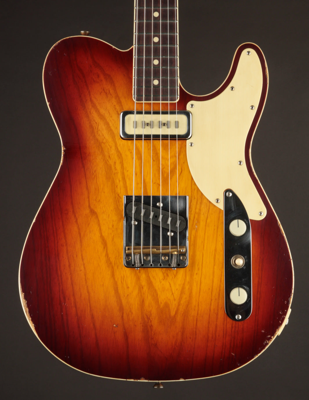 Finished in a lightly aged Tobacco Burst nitro-lacquer over a one-piece Swamp Ash body, this G/T is paired with a beautifully figured 3A Birdseye Maple neck ('53 C profile measuring .87-.96") and a luxurious (inlayed!) East Indian Rosewood fretboard. Elegant grained ivoroid binding, pickguard, inlays, and pickup cover inserts heighten its visual appeal.