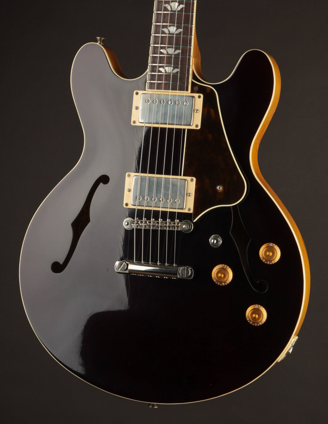 But here’s the kicker: despite its visual perfection, the Grantura feels immediately alive, never stiff or sterile. Plug it in, and the Throbak ER-Custom pickups deliver everything from warm jazz cleans to articulate rock crunch, all with incredible touch sensitivity and harmonic richness. The simplified control layout (2 volumes, 1 tone, 3-way switch) keeps it focused and intuitive, while the tone spectrum leans toward expanded vintage 335 territory: more clarity, more sparkle, and more dynamic range without losing the soul.