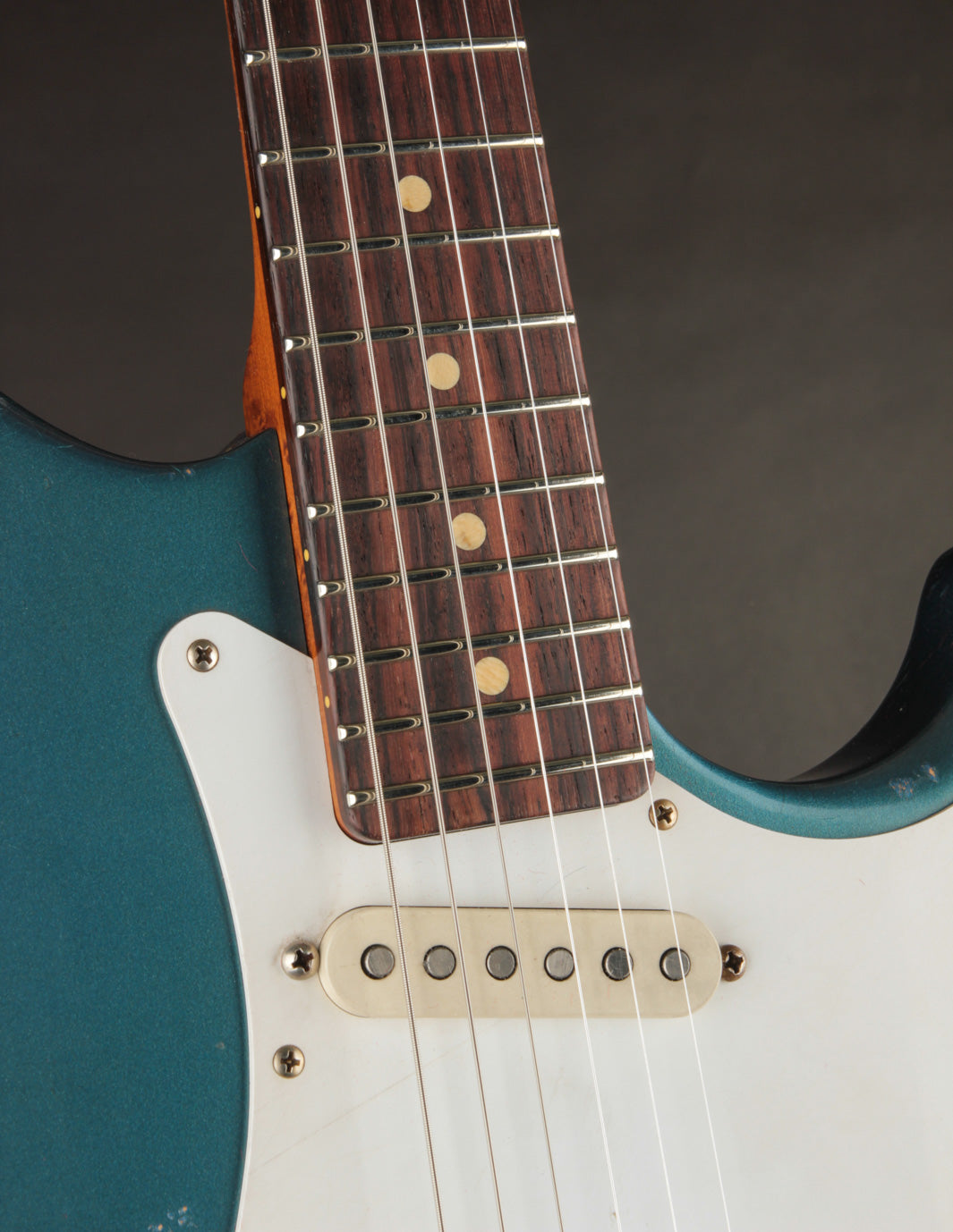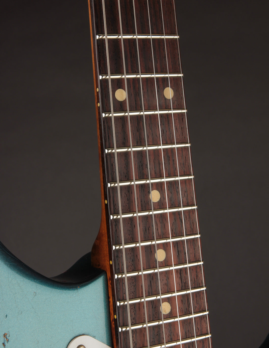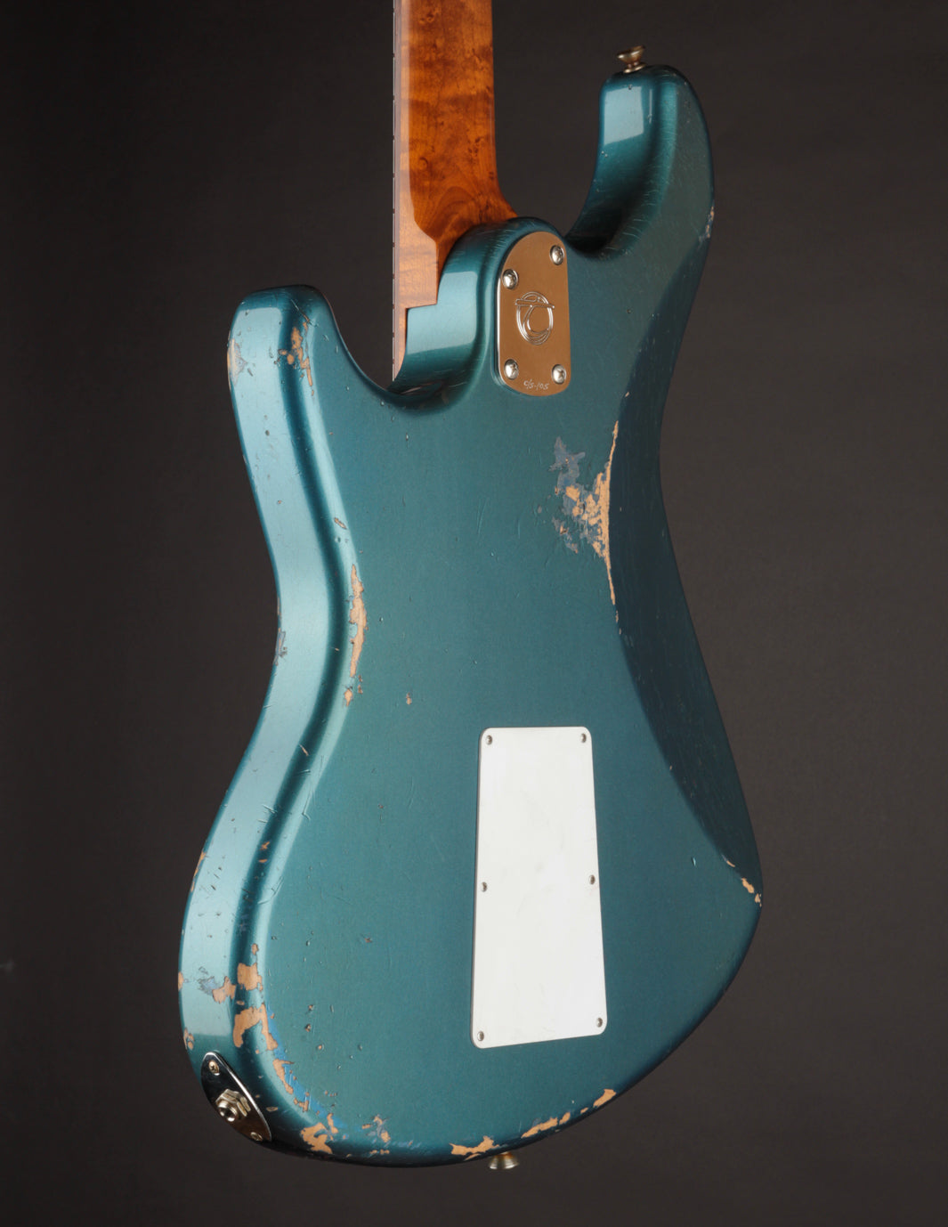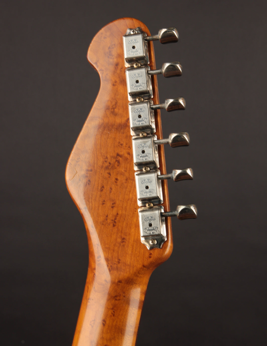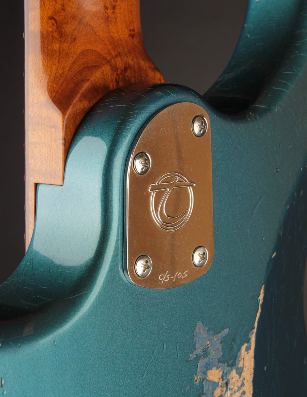 Last but not least...Ron's original bridge designs. The C/S comes in three bridge flavors - hardtail, 1-piece tremolo, and a 2 piece bridge & tremolo, the latter features Ron's "Brass Knuckle" saddle and ridiculously cool, touch-sensitive, and expressive tailside vibrato. In truth, it's the Jazzmaster style trem we've always wished existed. No tuning issues, no buzzing, no rattling, no b.s. The trem bar action is so fluid we found ourselves giggling out loud at how awesome it is.