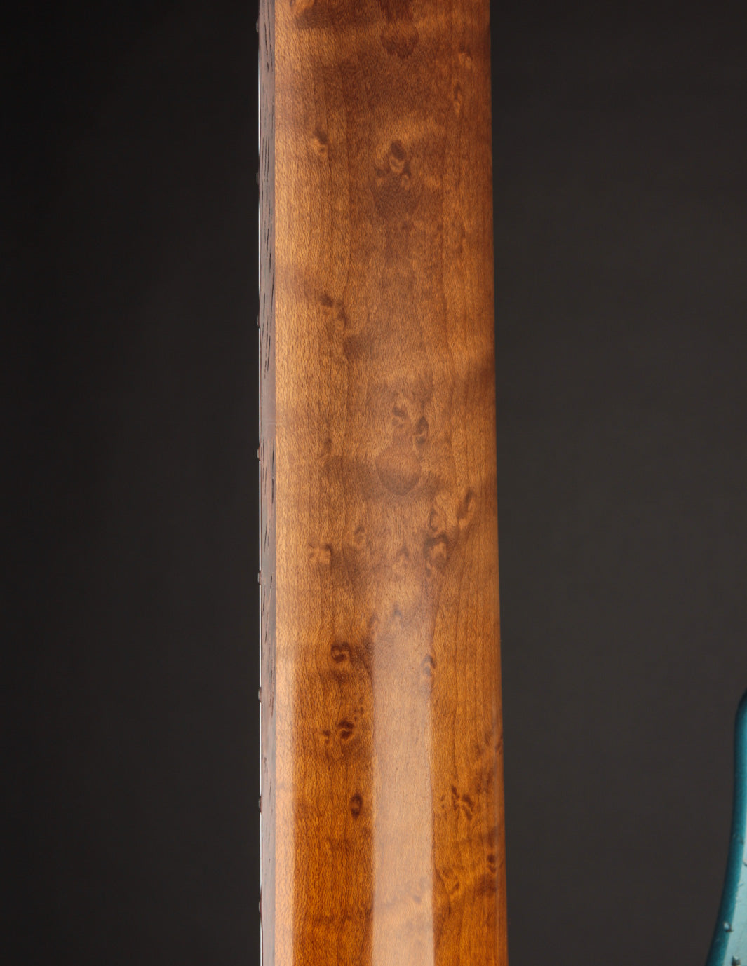 Next, let's look at neck. The medium C neck carve, Ron's "hidden fret ends" (and phenomenal fret work), the 10" radius, lack of a string tree (due to a specially engineered neck angle making a string tree unnecessary), and Ron's ultra-stable dovetail neck joint make the C/S a joy to play. This is the sort of neck carve that simply works, beautifully, and "gets out of your way" when playing. There's no fighting it, thinking about it, no struggle....it simply becomes an extension of your left hand.