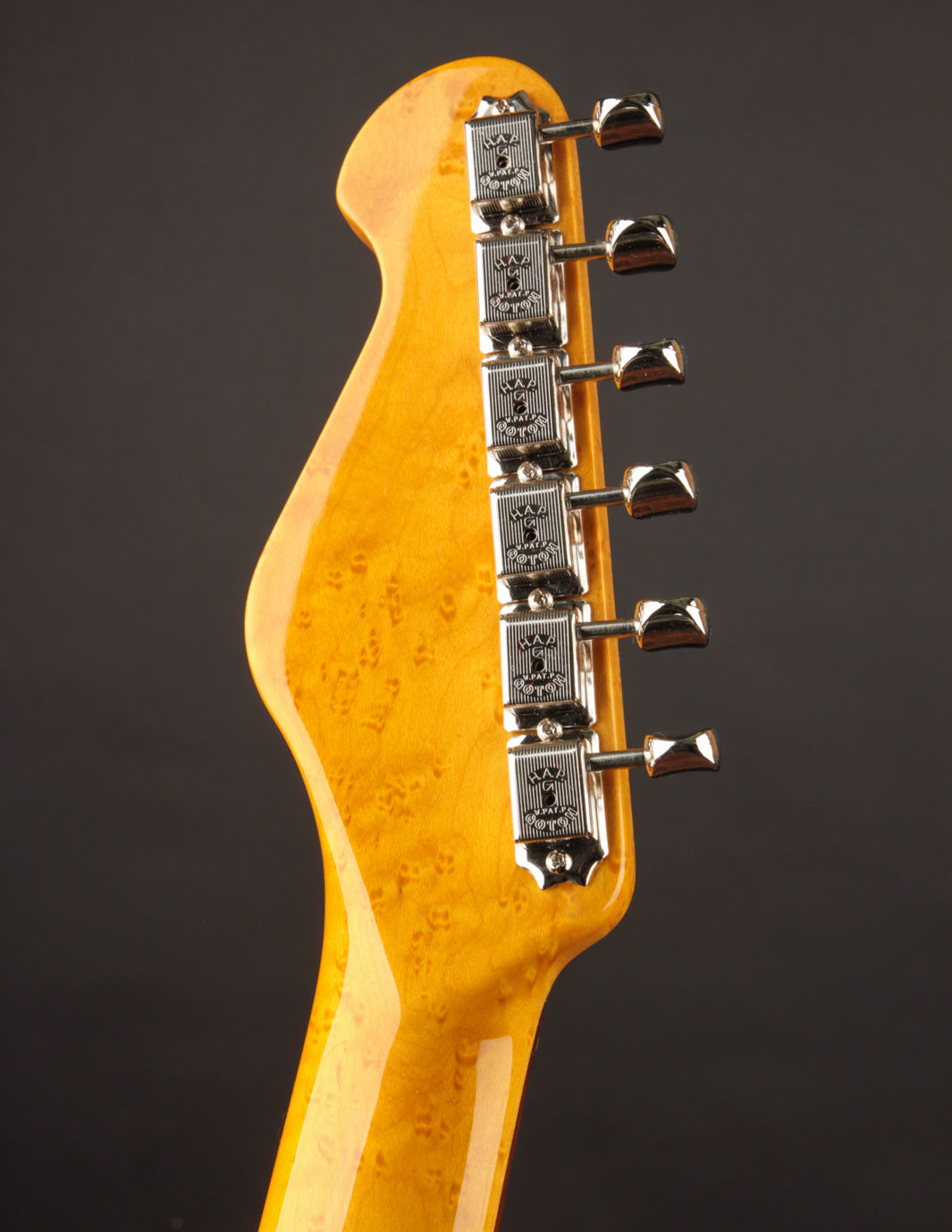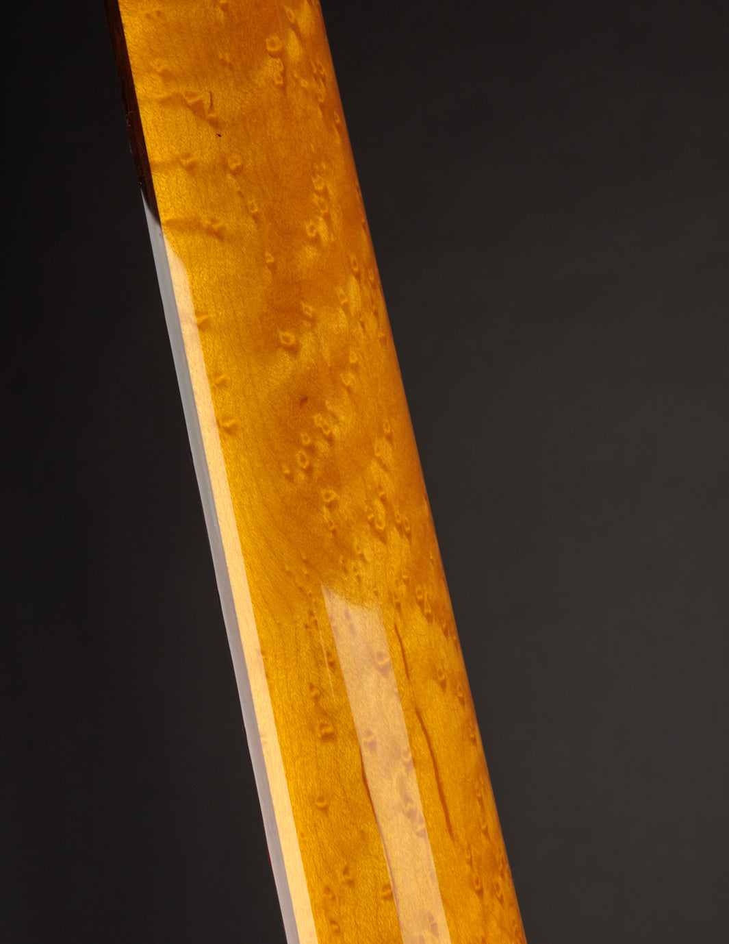 Next, let's look at neck. The medium C neck carve, Ron's "hidden fret ends" (and phenomenal fret work), the 10" radius, lack of a string tree (due to a specially engineered neck angle making a string tree unnecessary), and Ron's ultra-stable dovetail neck joint make the C/S a joy to play. This is the sort of neck carve that simply works, beautifully, and "gets out of your way" when playing. There's no fighting it, thinking about it, no struggle....it simply becomes an extension of your left hand.