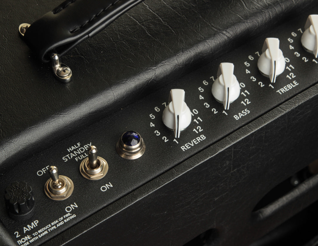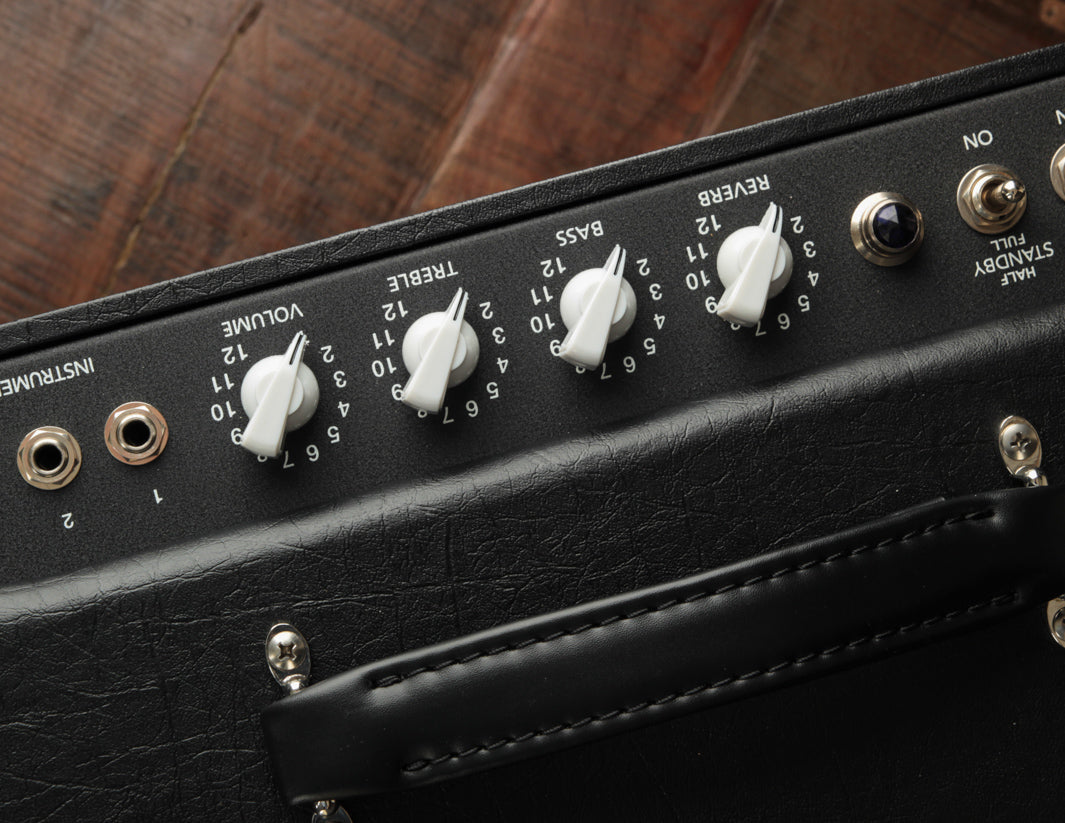The CD features fixed bias 6V6's (adjustable) and an all-tube transformer with coupled reverb and a full sized Accutronics tank. Housed in a tweed-style cabinet, the CD combines the superior dynamics of the tweed cabinet with the purity of the AB763 reverb design. All the stiffness and directionality of a typical mid-60s cabinet are gone, replaced by the lively and percussive resonance that the tweed era cabinets are known for.