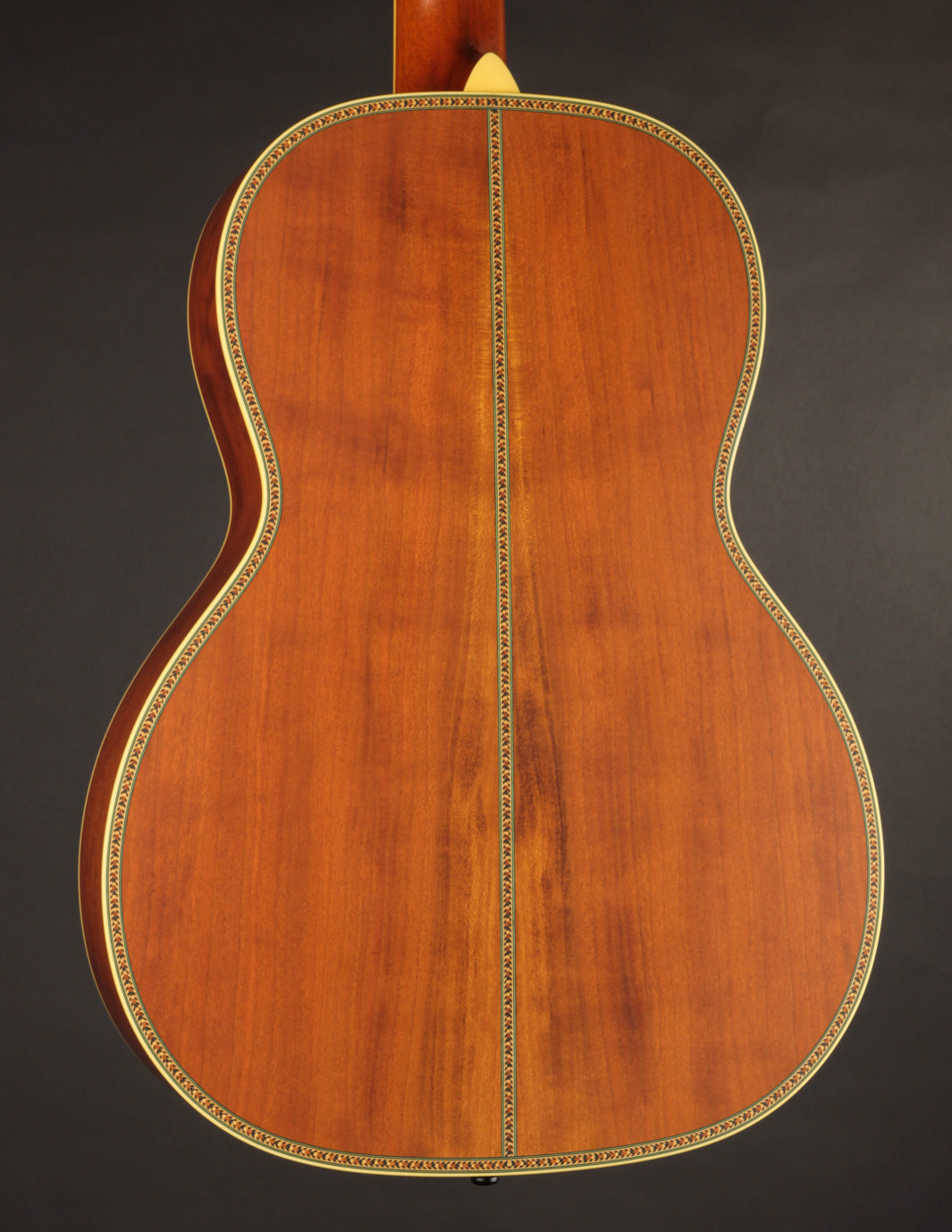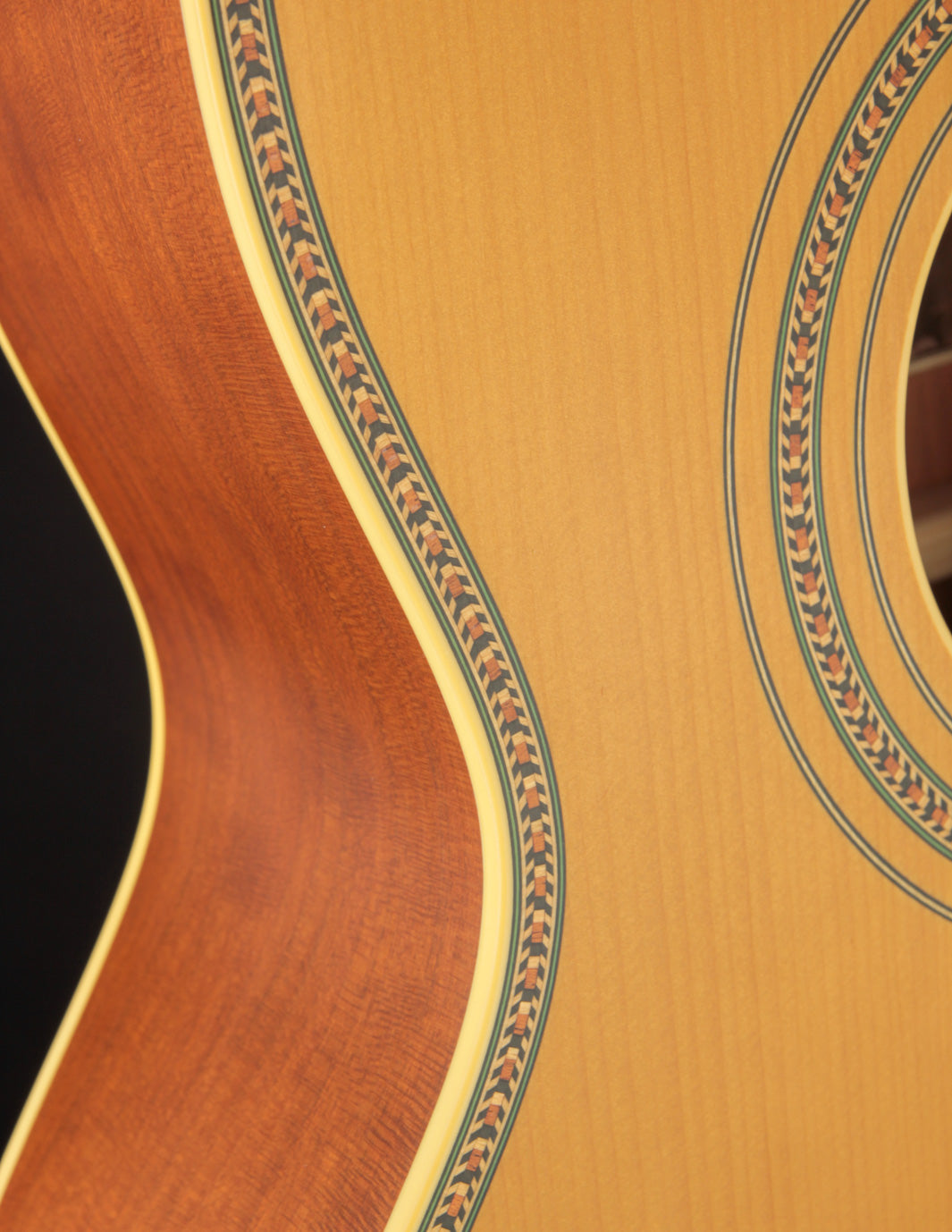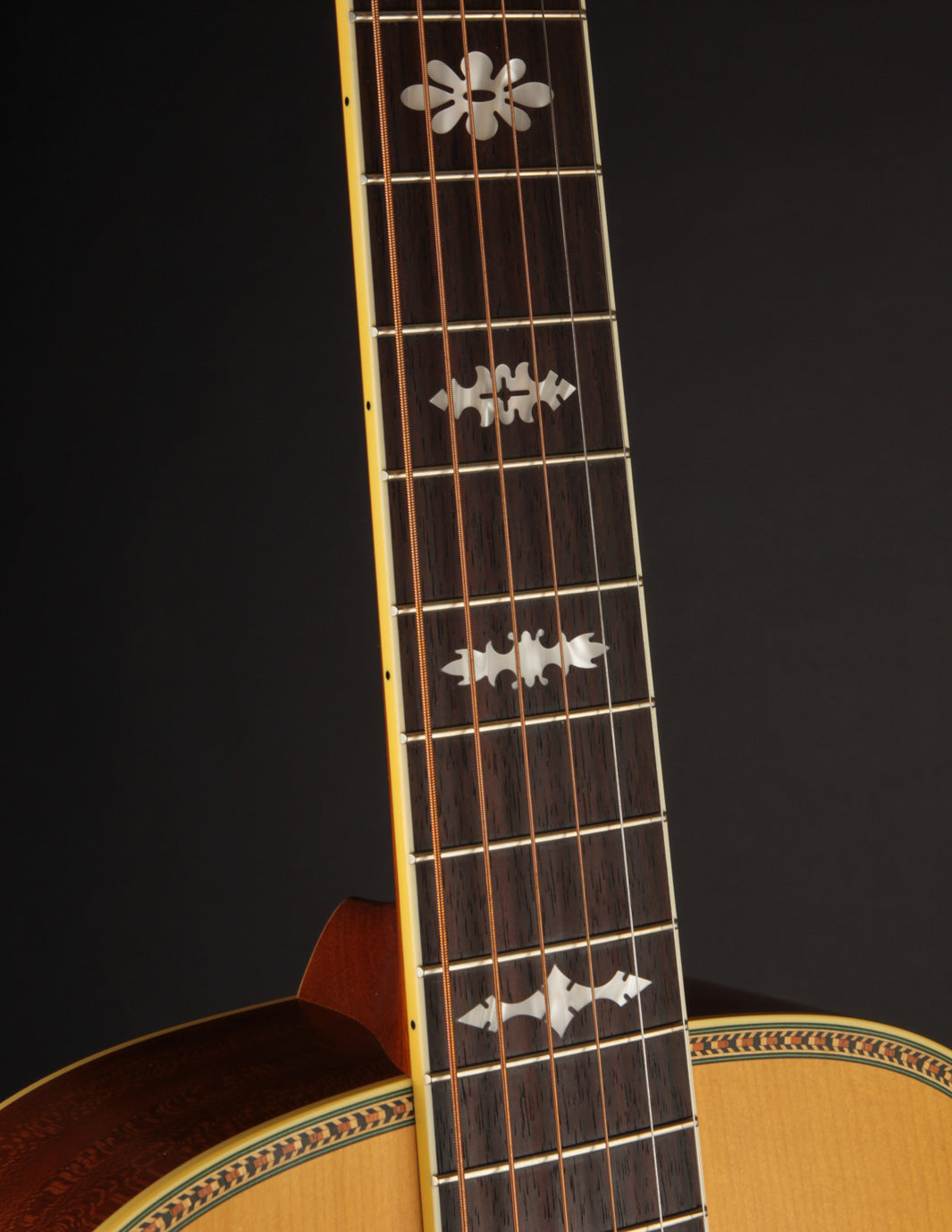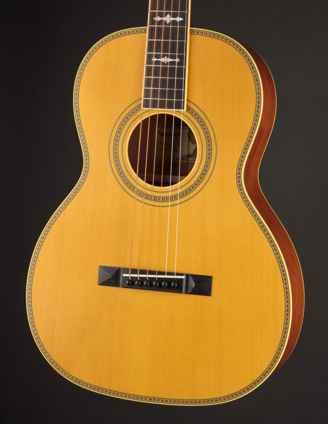 From Waterloo Guitars: "The WL-S Deluxe possesses a richness, dimensionality, and warmth that must be heard to be believed. Inspired by ornately appointed Stella guitars from the 1930’s, the WL-S features intricate wood purflings and custom acrylic inlays for an appearance to match its detailed tone. A hand rubbed varnish finish completes the WL-S both aesthetically and tonally, with a beautiful vintage patina and acoustical excitability that brings out the nuances of this ladder braced design. A solid cherry wood back and sides further enhance the unique character of this guitar, providing exceptional balance and articulation.