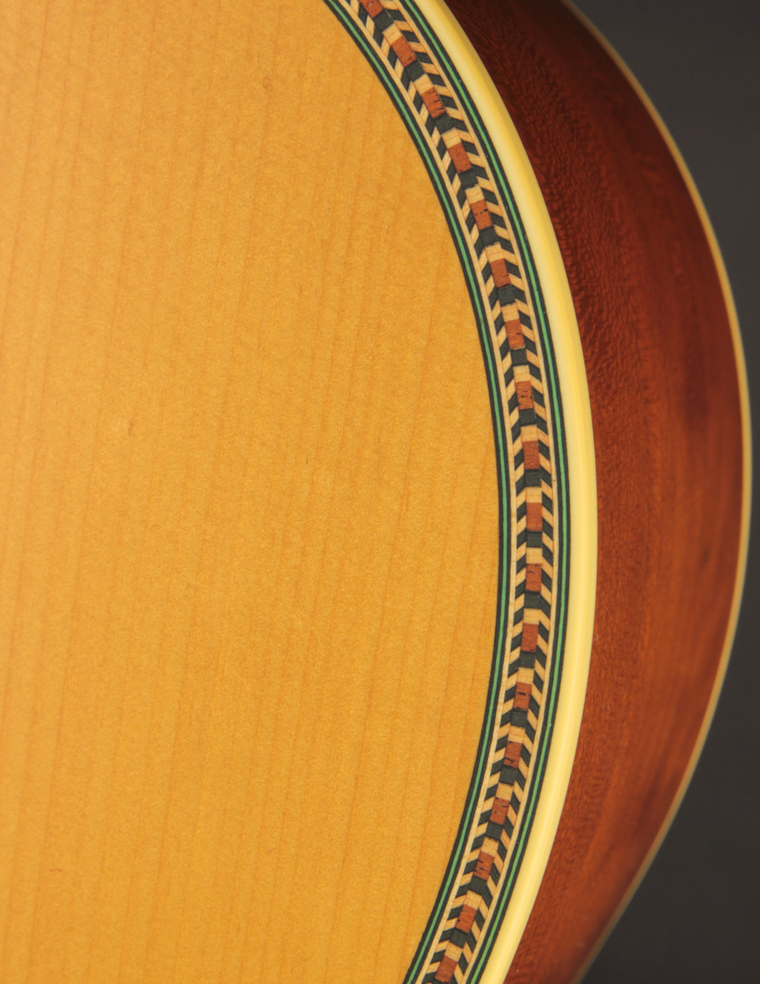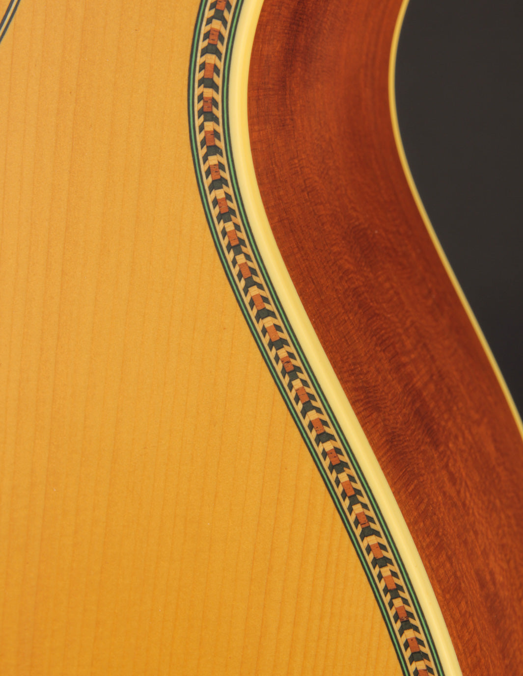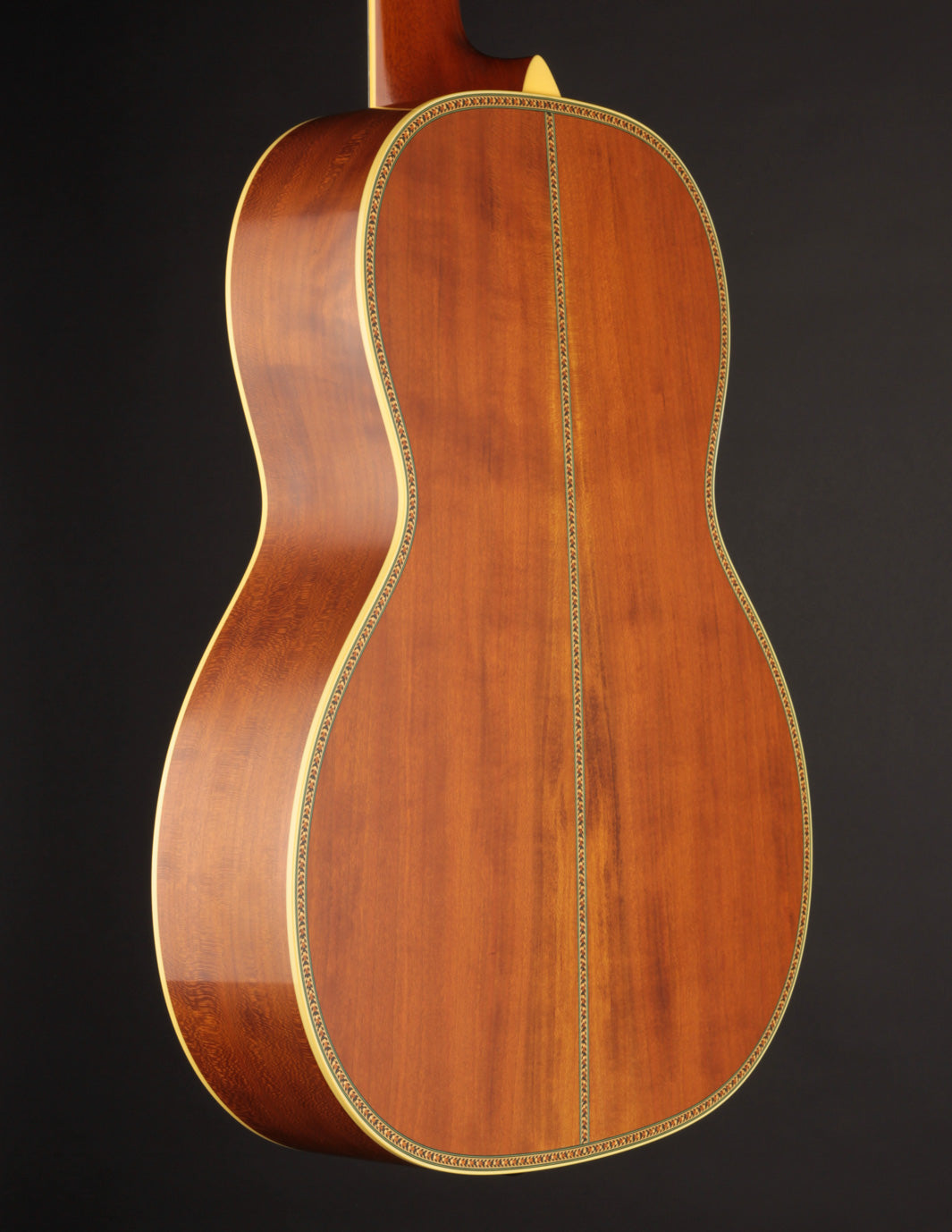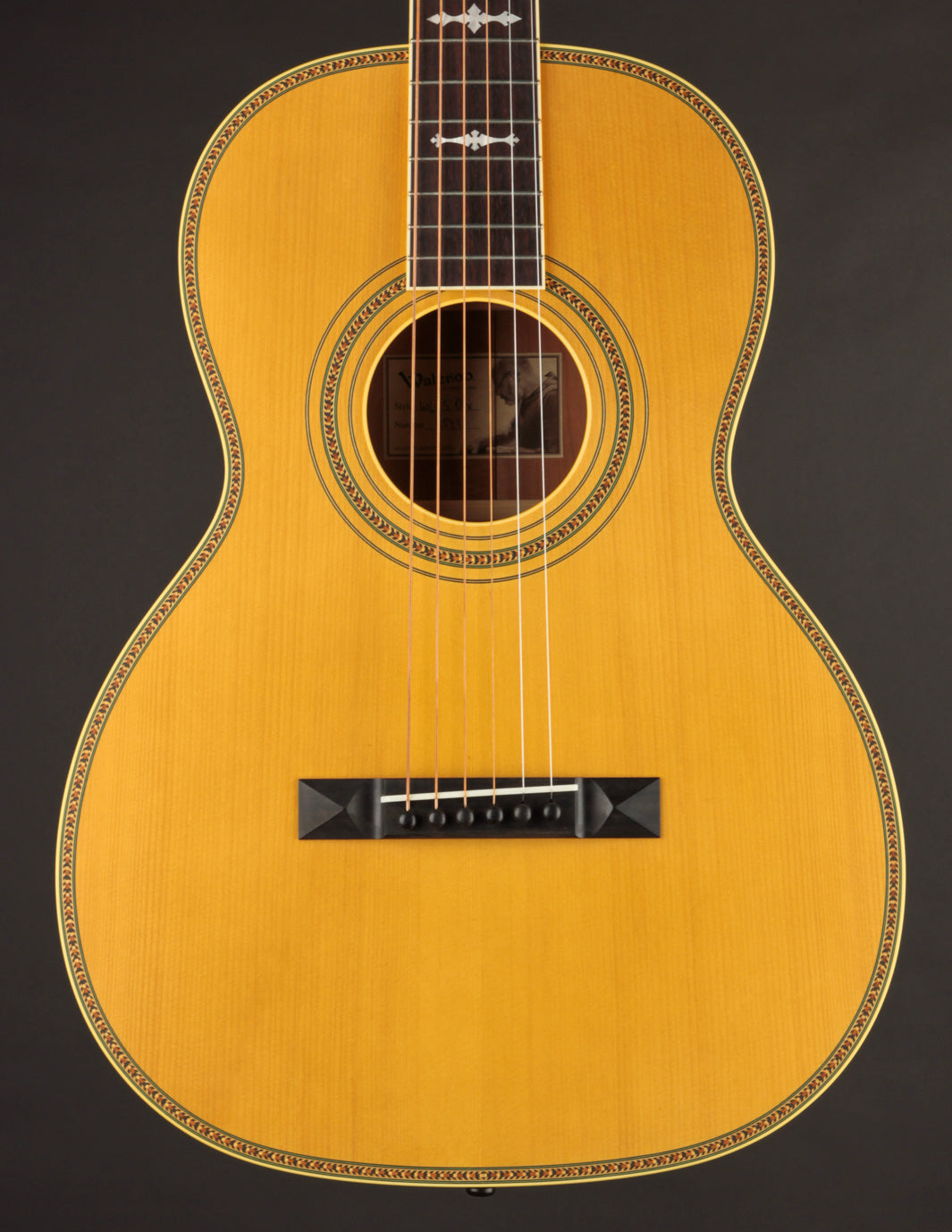From Waterloo Guitars: "The WL-S Deluxe possesses a richness, dimensionality, and warmth that must be heard to be believed. Inspired by ornately appointed Stella guitars from the 1930’s, the WL-S features intricate wood purflings and custom acrylic inlays for an appearance to match its detailed tone. A hand rubbed varnish finish completes the WL-S both aesthetically and tonally, with a beautiful vintage patina and acoustical excitability that brings out the nuances of this ladder braced design. A solid cherry wood back and sides further enhance the unique character of this guitar, providing exceptional balance and articulation.