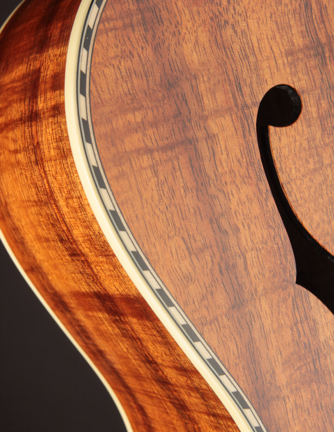 Like a banjo, the neck extends into the body with an integral pole, creating a mechanically solid neck joint that enhances both stability and tone transfer.